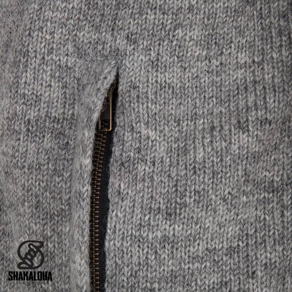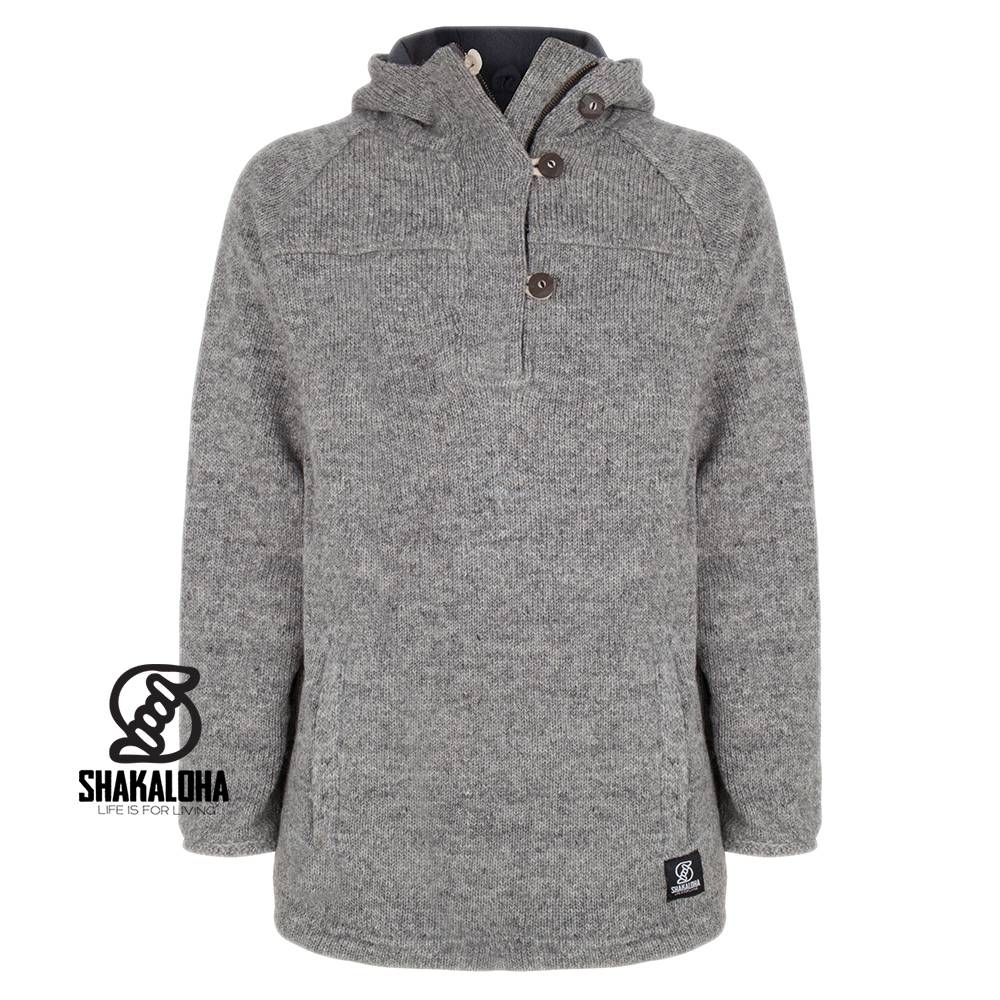 Die erste Shakaloha-Strickjacke in Pulloverform! Dieser schöne graue Pullover hat einen Reißverschluss und schöne Knöpfe. Der Reißverschluss läuft bis zum Brustbein. Wie Sie es von Shakaloha gewohnt sind, hat dieses Modell das warme und weiche Fleecefutter, auch in der Kapuze, im Kragen und in den Armen. Perfekt als Pullover im Winter und als Jacke im Sommer. Diese Weste ist in Grau und in den Größen S bis einschließlich 3XL erhältlich. Die Shakaloha-Jacken bestehen aus 100% neuseeländischer Schafwolle und werden in Nepal unter Berücksichtigung von Tieren und Mitarbeitern hergestellt. Die Strickjacken können mit einem kleinen Wollwaschmittel in einem 30-Grad-Wollwaschprogramm gewaschen werden.