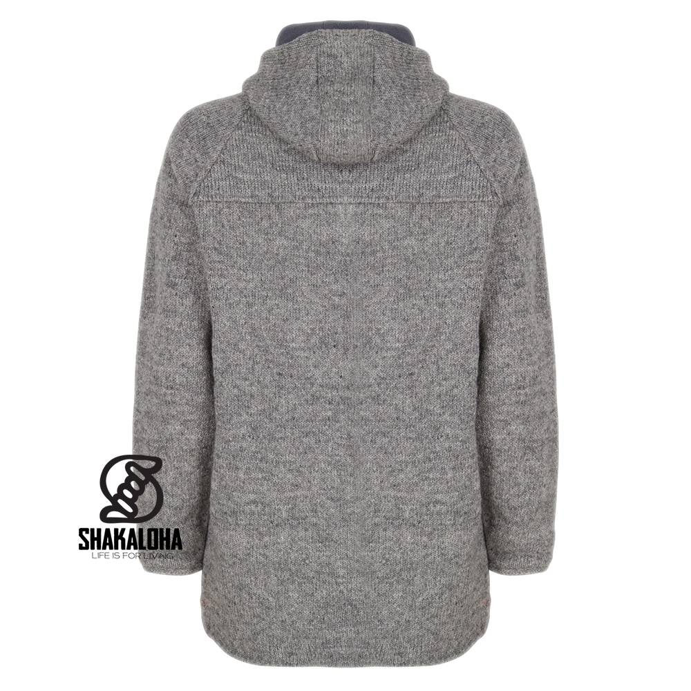 Shakaloha Gestrickte Wollweste Hallberg Grau mit Fleecefutter und Kapuze – Herren/Uni – Handgefertigt in Nepal aus Schafwolle