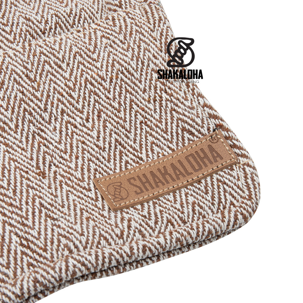 Einzigartige Shakaloha-Gürteltasche mit Reißverschlüssen vorne und hinten mit hellbraun / beigem Zickzackmuster. Aus Baumwolle und Hanf. Ideal für Festivals, Reisen und Spaziergänge. In vielen verschiedenen Farben erhältlich.