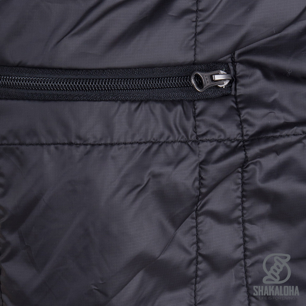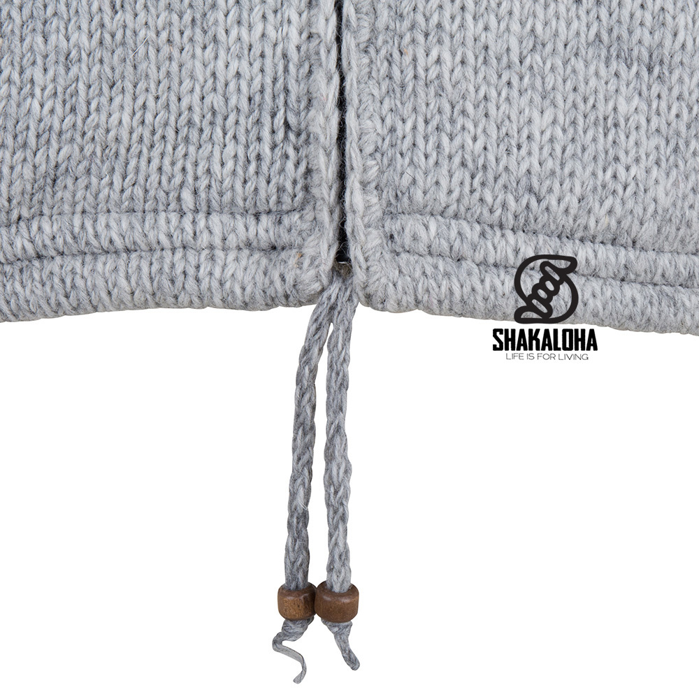 Beschreibung Shakaloha Strick-Wollweste Breaker Grau mit Nylon-Windstopper und abnehmbarer Kapuze – Herren/Uni – Handgefertigt in Nepal aus Schafwolle