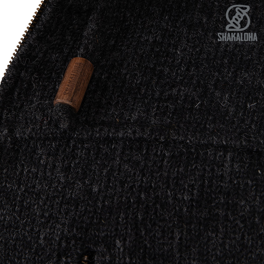 Anthrazitgrauer Herren-Strickmantel aus Wolle mit vielen Taschen, drei mit Patte mit Knopf und einer mit Reißverschluss. Der Cardigan fällt bis zur Hüfte und ist komplett mit warmem und weichem Fleece gefüttert, auch an den Ärmeln und der abnehmbaren Kapuze. Und eine Jacke, die man als Weste, Jacke, Outdoor, aber auch ordentlich tragen kann. Die Jacke ist in 3 verschiedenen Farben und von S bis 3XL erhältlich. Die Shakaloha-Westen bestehen zu 100% aus neuseeländischer Schafwolle und werden in Nepal mit Respekt für Tiere und Mitarbeiter hergestellt. Die Strickjacken können mit etwas Wollwaschmittel im 30 Grad Wollwaschprogramm gewaschen werden.