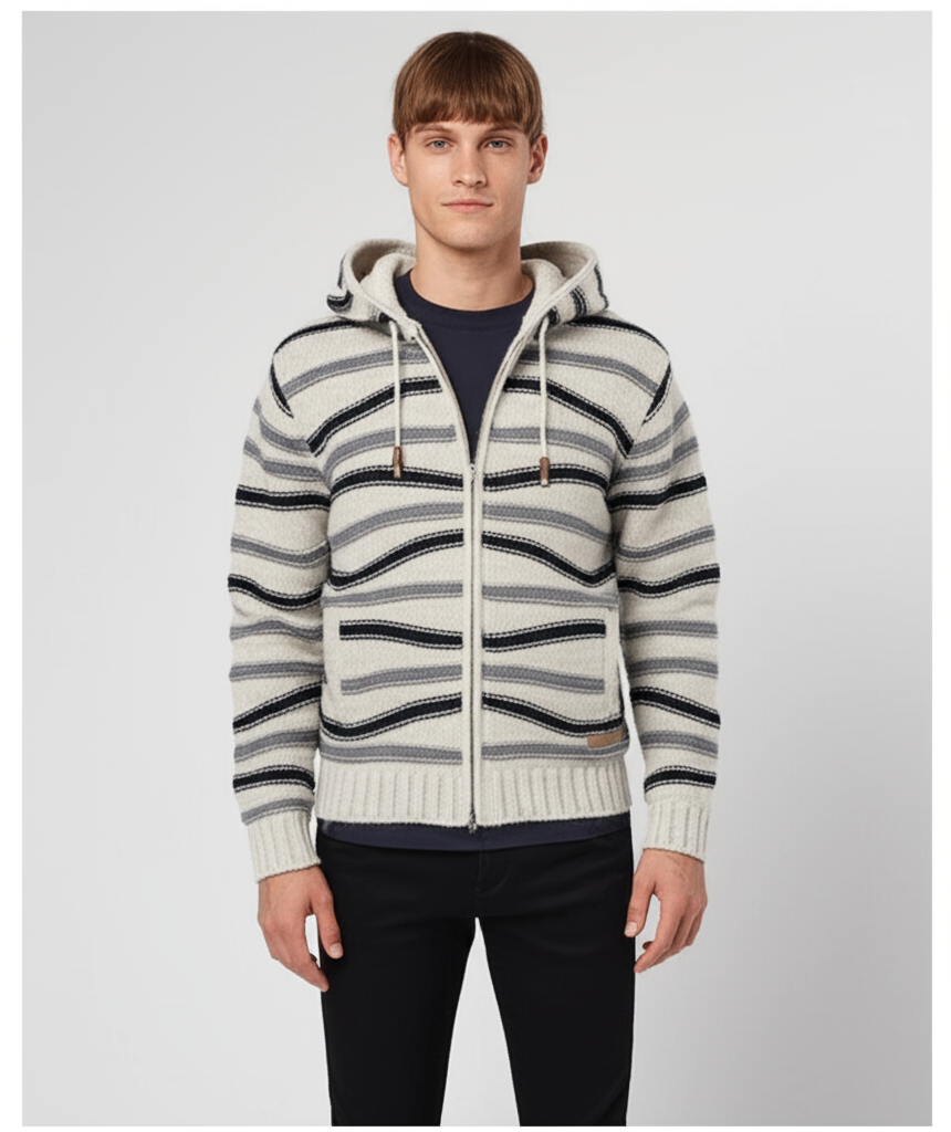 M Luma – Herren‐Wolljacke mit Fleecefutter, YKK Frontzip, abnehmbare Kapuze, 2 Taschen, Rippbündchen, Regular Fit.