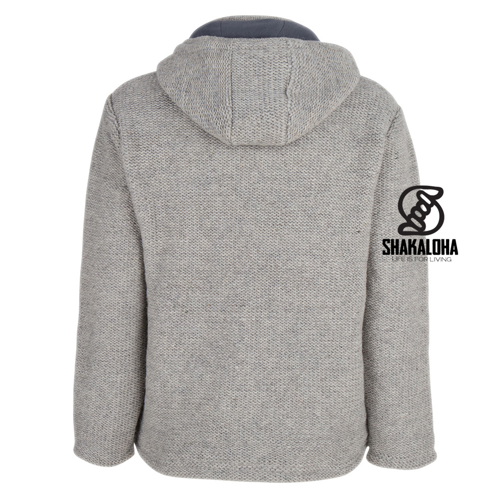 Shakaloha Strick-Wollweste Maverick ZH Grau mit Fleecefutter und abnehmbarer Kapuze – Herren/Uni – Handgefertigt in Nepal aus Schafwolle