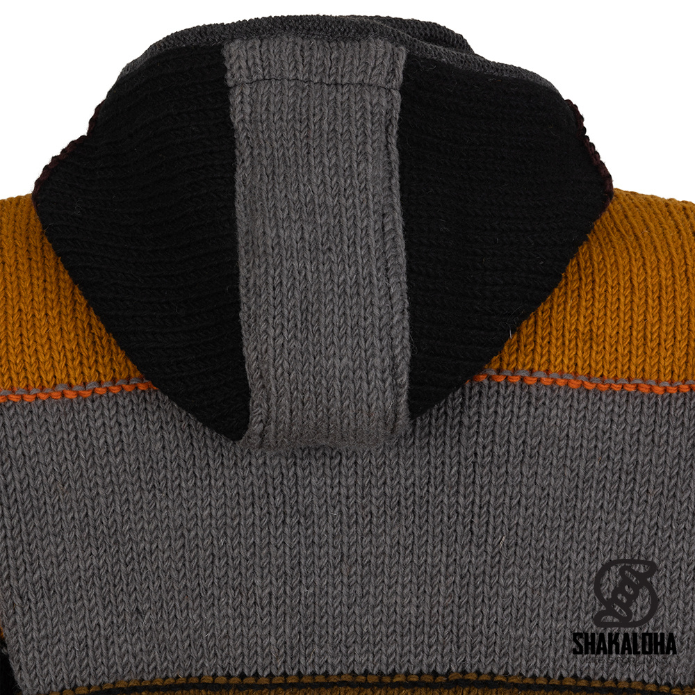 Shakaloha-Cardigan mit breiten, bunten Streifen. Grobstrick in Nepal gestrickt. Der gesamte Cardigan ist mit schönem Mikrofleece gefüttert, einschließlich der Kängurutasche für kuschelige, warme Hände. Abgerundet mit einem robusten, hochwertigen YKK-Reißverschluss am Hauptverschluss und einer Innentasche mit Reißverschluss. Die Kapuze ist ebenfalls mit Fleece gefüttert und abnehmbar. Eine wunderbare Jacke für jede Jahreszeit! Mit Liebe in Nepal hergestellt. Ausgestattet mit einem garantierten YKK-Qualitätsreißverschluss.