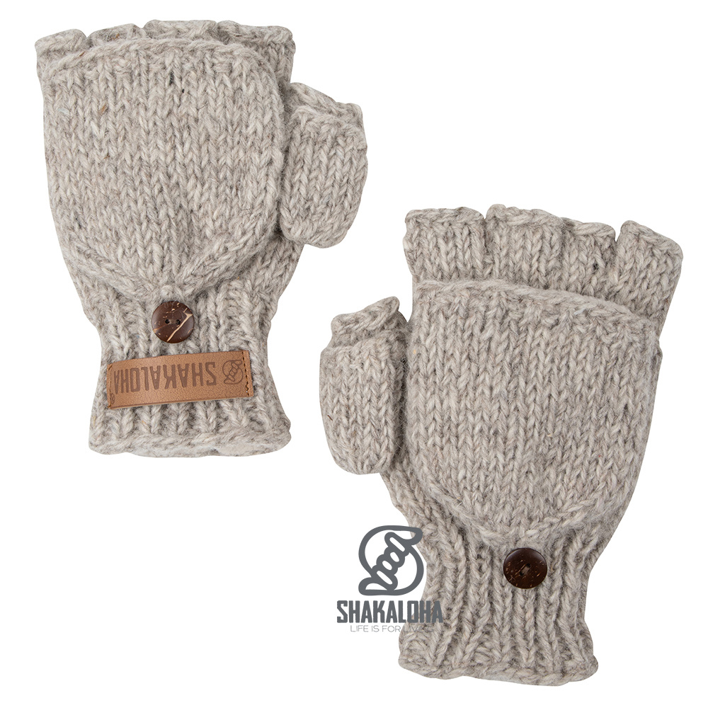 Strickhandschuh ohne Finger und ohne Daumen. Fleecegefüttert, in 2 Größen erhältlich, mit integriertem Fäustling um Finger und Daumen optional abzudecken