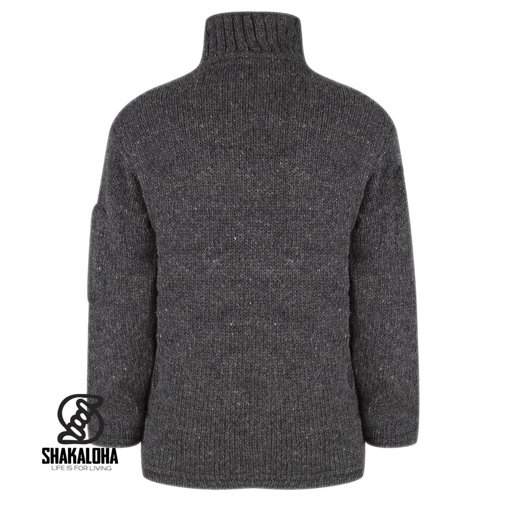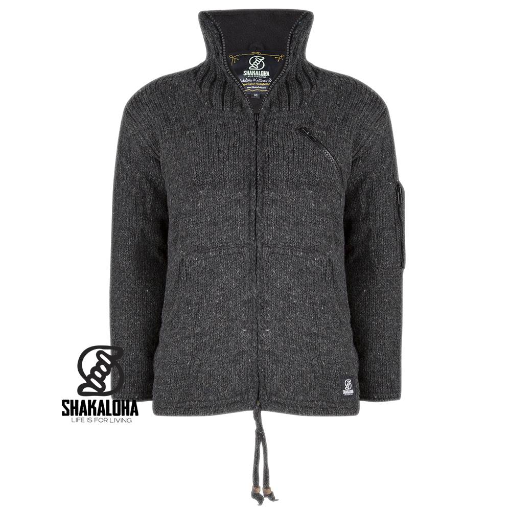 Shakaloha Strick-Wollweste Crush Collar Anthrazit mit Fleecefutter und hohem Kragen – Herren/Uni – Handgefertigt in Nepal aus Schafwolle