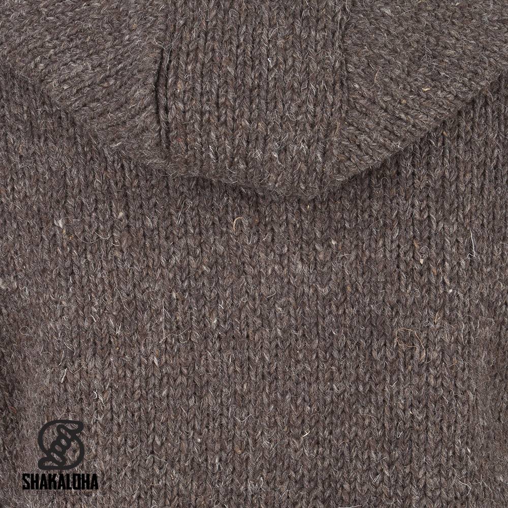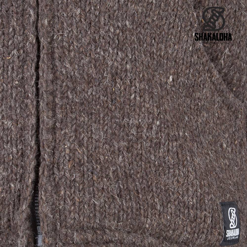 Shakaloha Strick-Wollweste Crush Ziphood Dunkelbraun mit Fleecefutter und abnehmbarer Kapuze – Herren/Uni – Handgefertigt in Nepal aus Schafwolle
