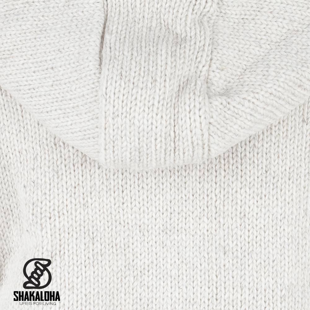 Shakaloha Strick-Wollweste Flash Ziphood Beige Creme mit Fleecefutter und abnehmbarer Kapuze – Herren/Uni – Handgefertigt in Nepal aus Schafwolle