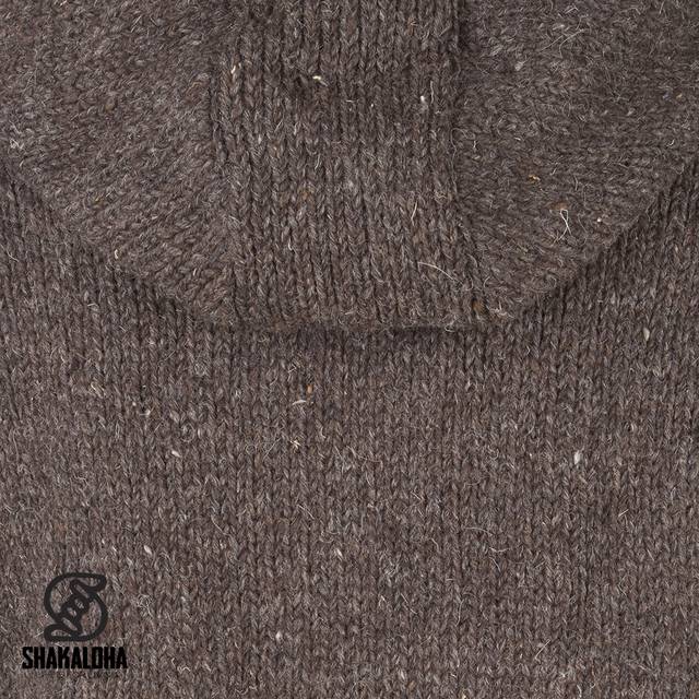 Diese zeitlose dunkelbraune Strickjacke hat einen Kragen und eine abnehmbare Kapuze und ist vollständig mit weichem Fleece gefüttert, auch im Kragen, in der Kapuze, in den Armen und in den Taschen, damit Sie schön warm bleiben und die Wolle nicht juckt. Der YYK-Reißverschluss ist sehr stark. Diese warme Strickjacke kann im Winter als Jacke getragen werden, ist aber auch an kühlen Sommertagen sehr bequem. Erhältlich in vielen natürlichen Farben und in den Größen S bis 3XL. Dieses Modell ist auch mit hohem Kragen ohne Kapuze erhältlich. Die Shakaloha-Jacken bestehen aus 100% neuseeländischer Schafwolle und werden in Nepal unter Berücksichtigung von Tieren und Mitarbeitern hergestellt. Die Westen können mit einem kleinen Wollwaschmittel in einem 30-Grad-Wollwaschprogramm gewaschen werden.