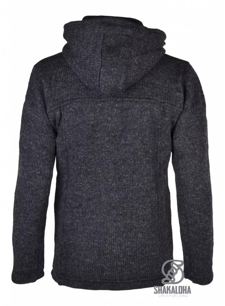 Shakaloha Strick-Wollweste Navigator Anthrazit mit Fleecefutter und abnehmbarer Kapuze – Herren/Uni – Handgefertigt in Nepal aus Schafwolle
