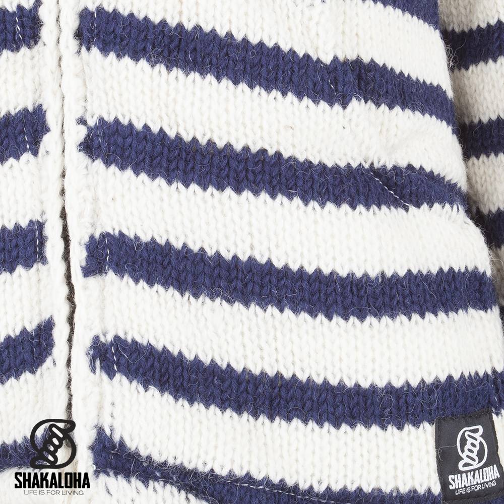Diese warme und bequeme Shakaloha Herrenweste ist weiß mit dunkelblauen Querstreifen. Die Weste hat Seitentaschen, einen starken YKK-Reißverschluss und eine abschließbare Innentasche. Die Kapuze ist abnehmbar und die Weste ist sowohl am Körper als auch an den Armen vollständig mit weichem Fleece gefüttert. Diese warme Strickjacke kann im Winter als Jacke getragen werden, ist aber auch an kühlen Sommertagen sehr bequem. Erhältlich in verschiedenen Farbkombinationen und in den Größen S bis 3XL. Die Shakaloha-Jacken bestehen aus 100% neuseeländischer Schafwolle und werden in Nepal unter Berücksichtigung von Tieren und Mitarbeitern hergestellt. Die Westen können mit einem kleinen Wollwaschmittel in einem 30-Grad-Wollwaschprogramm gewaschen werden.