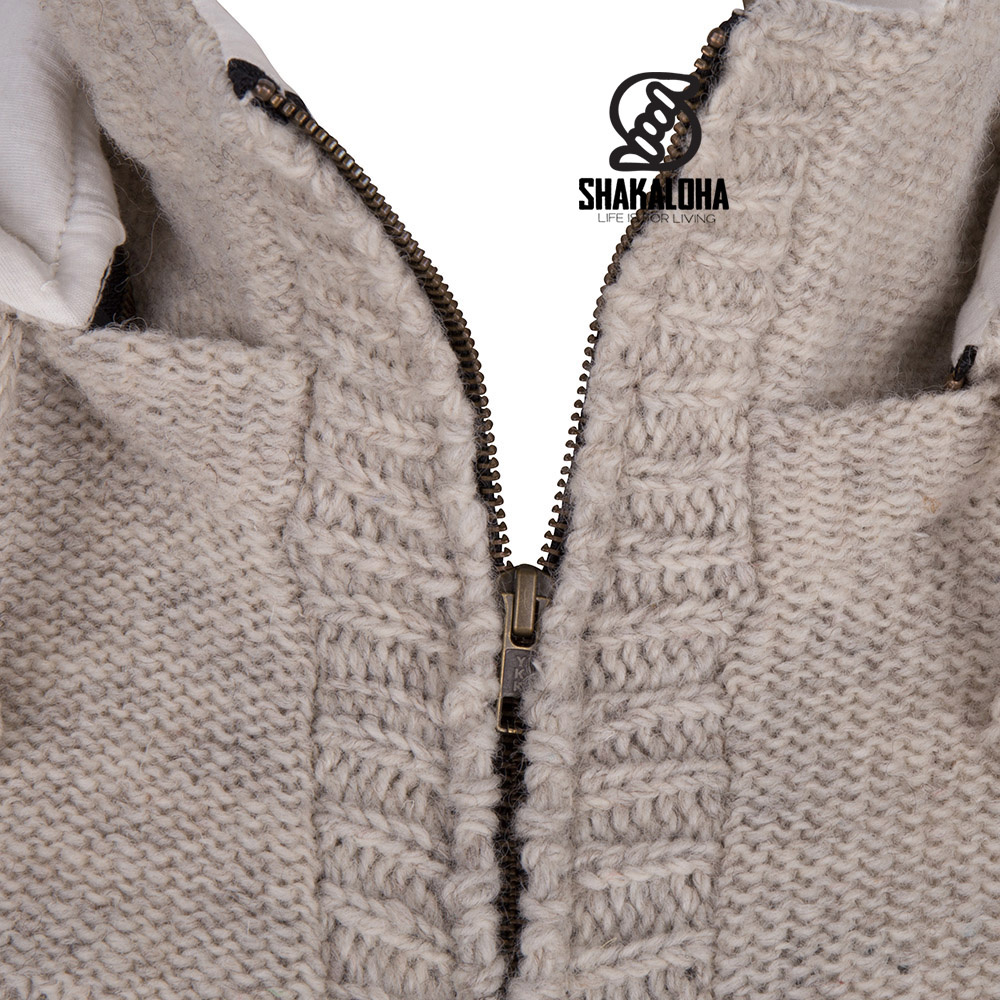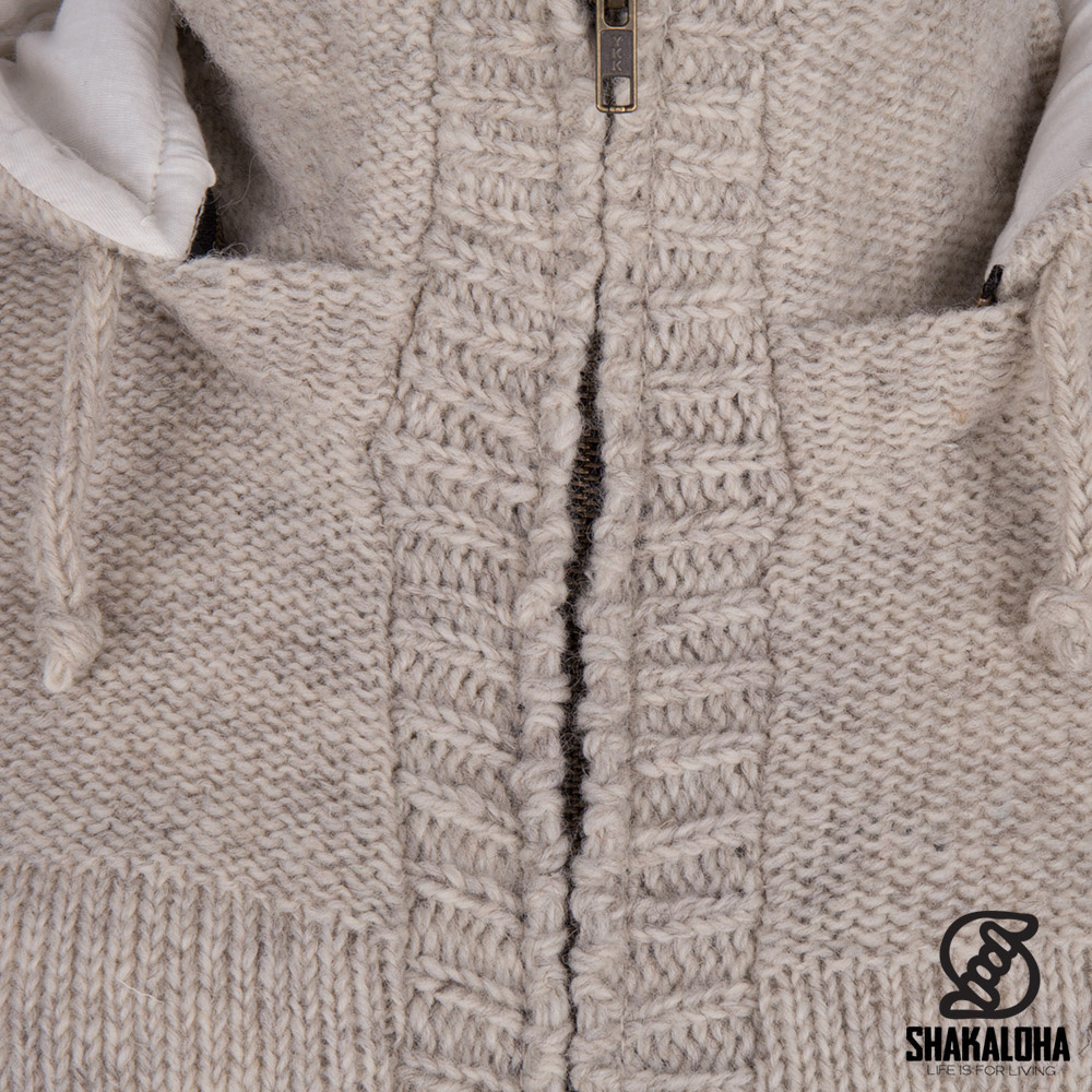 Shakaloha Strick-Wollweste Brizo ZH Beige Creme mit Fleecefutter und Kapuze – Damen – Handgefertigt in Nepal aus Schafwolle