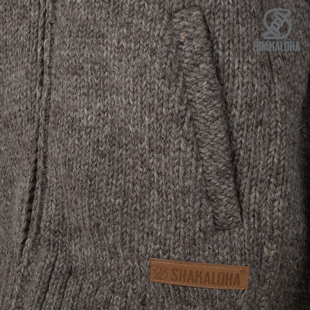 Diese sportliche hellbraune Wolljacke für Damen hat einen Kragen und eine Kapuze, die wie die gesamte Innenseite mit warmem Fleece gefüttert sind. Die Seitentaschen und die Innentasche sind ebenfalls mit diesem bequemen Fleece gefüttert. Die Reißverschlüsse bestehen aus YKK und sind sehr stark. Die Weste ist ideal, um das ganze Jahr über getragen zu werden. Dieses Modell ist auch in den Farben Beige, Anthrazitgrau, Grau und einer Kombination aus rotem norwegischem Strick und Ecru in den Größen S-XXL erhältlich. Die Shakaloha-Westen werden in Nepal aus 100% neuseeländischer Schafwolle unter Berücksichtigung von Mensch und Tier hergestellt. Die Weste kann einfach bei 30 Grad Wollwäsche mit etwas Wollwaschmittel gewaschen werden.