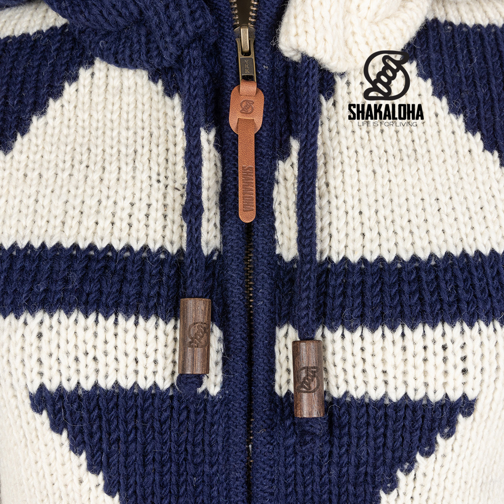Pendle ZipHood Damen Strickjacke aus Wolle in Weiß und Marineblau