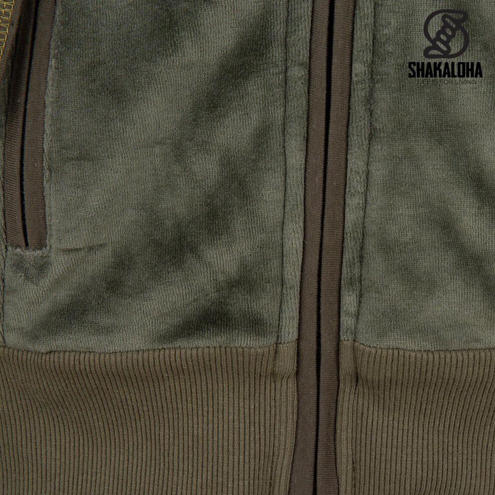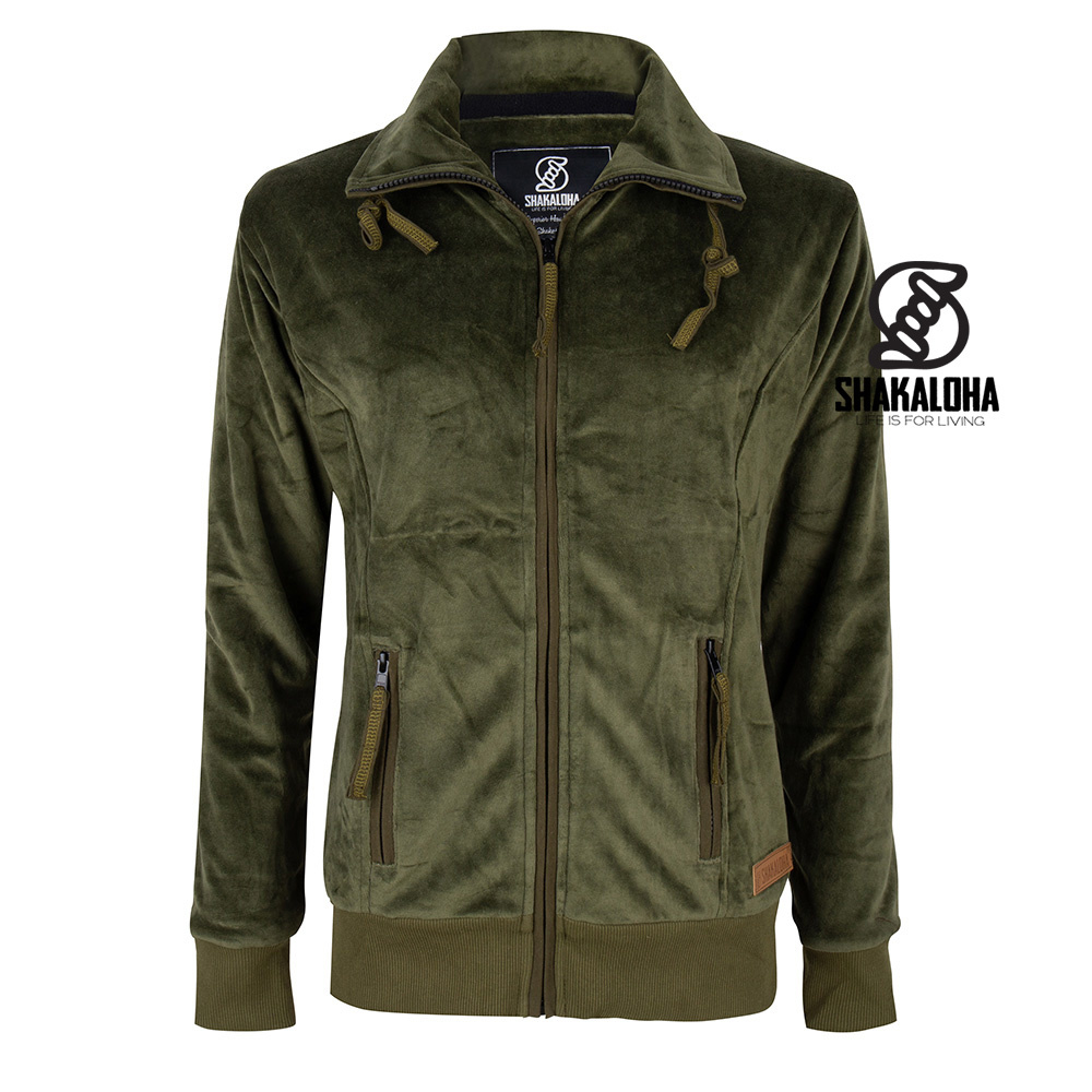 Baumwolljacke mit samtartigem Griff, ungefüttert, mit 2 Taschen und Kragen.