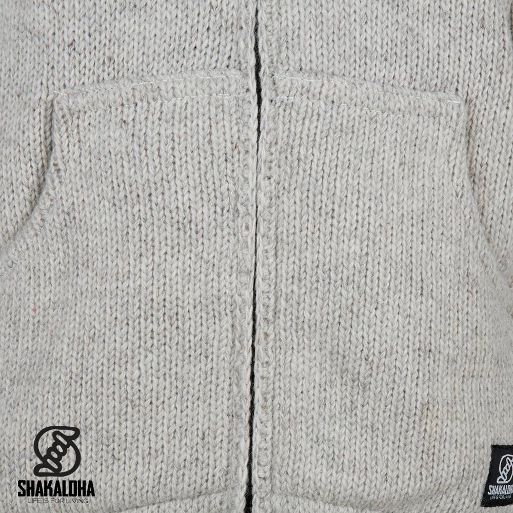 This warm woolen beige cardigan has a windstopper lining. This combination makes the cardigan unique. The jacket has a collar and a detachable hood, side pockets and an inner pocket and is made of 100% sheep wool, knitted in Nepal. This vest falls under the men's sizes, but is also often bought and worn by ladies. This windproof woolen cardigan is also available in the color beige. This is the only Shakaloha cardigan that does not have a fleece inside but a windstopper and that keeps you extra warm on stormy days. All SHAKALOHA jackets are made in Nepal from 100% New Zealand sheep's wool that is obtained in an animal-friendly way. The cardigans are available in sizes S-3XL in 3 different colors and the jacket can be washed on a 30 degree wool wash program with a little wool detergent.