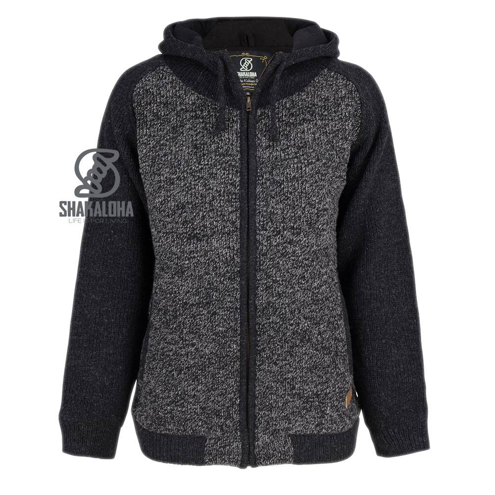 Description Shakaloha Knitted Woolen Jacket Bohemian Antracite grey with Cotton Lining and Hood - Men - Unisex - Handmade in Nepal from sheep's wool