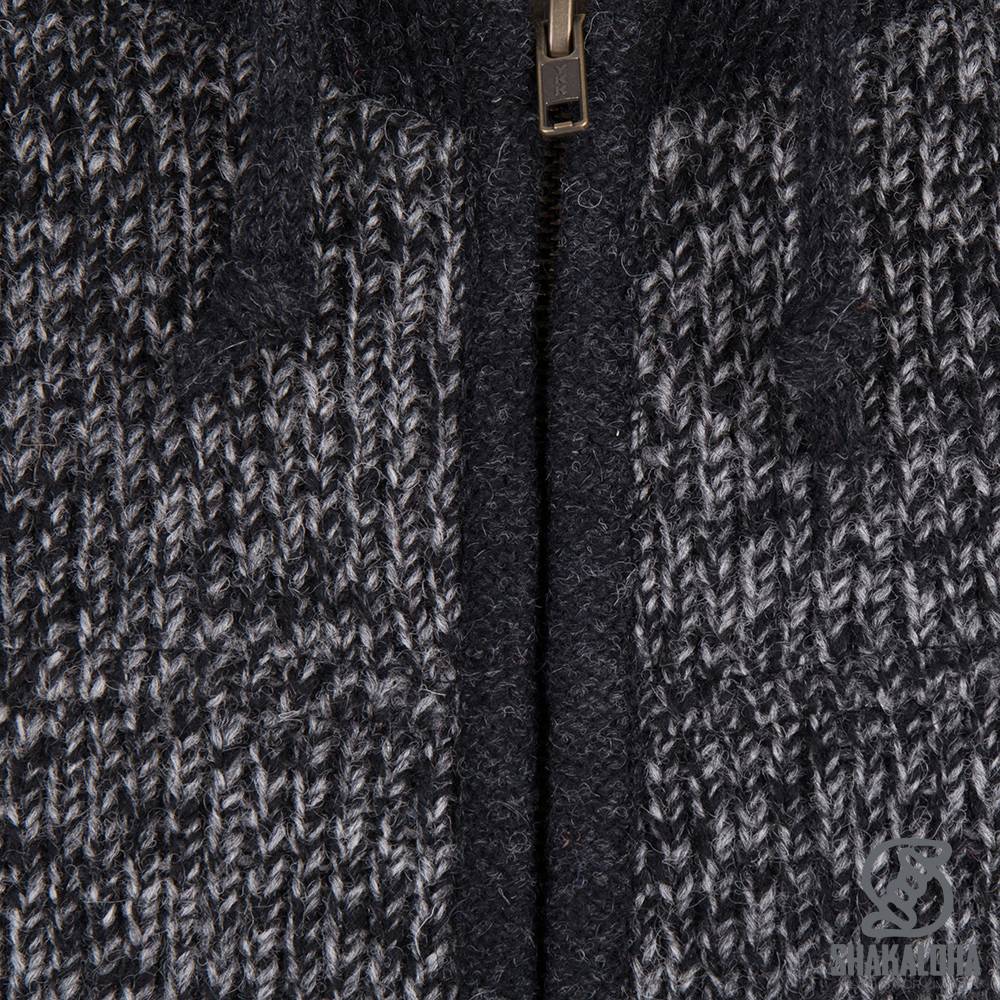 Shakaloha Knitted Woolen Jacket Bohemian Antracite grey with Cotton Lining and Hood - Men - Unisex - Handmade in Nepal from sheep's wool