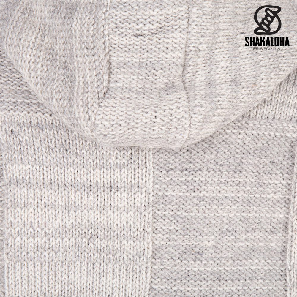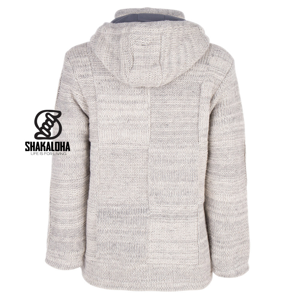 Shakaloha Knitted Wool Cardigan Buster ZH with Fleece Lining and Detachable Hood - Man/Uni - Handmade in Nepal from Sheep Wool