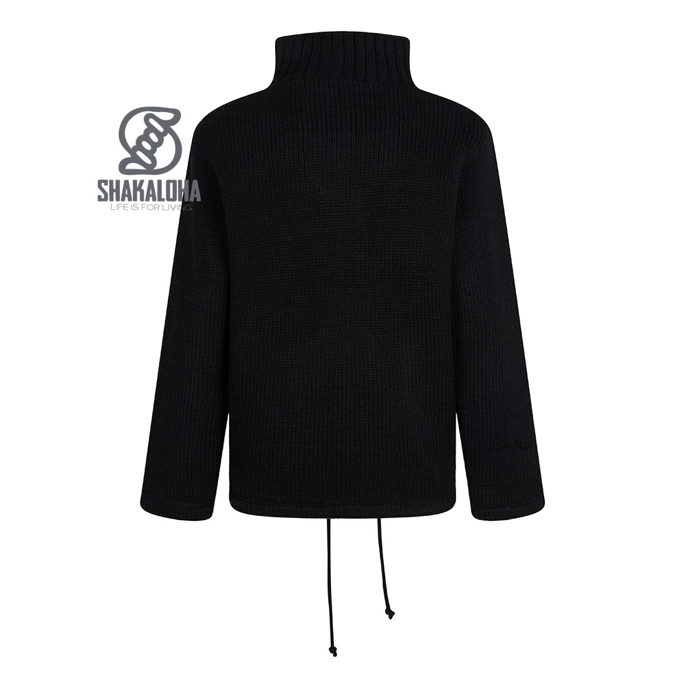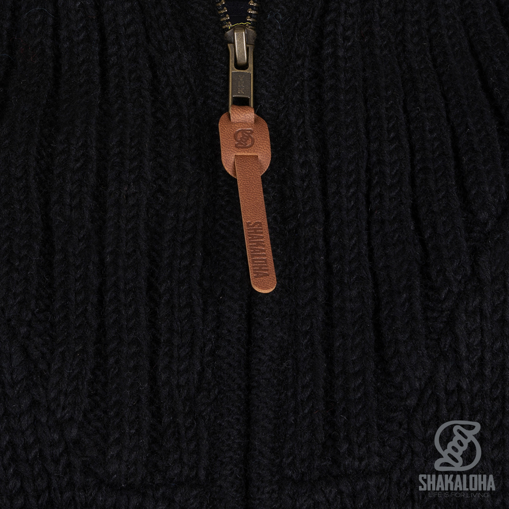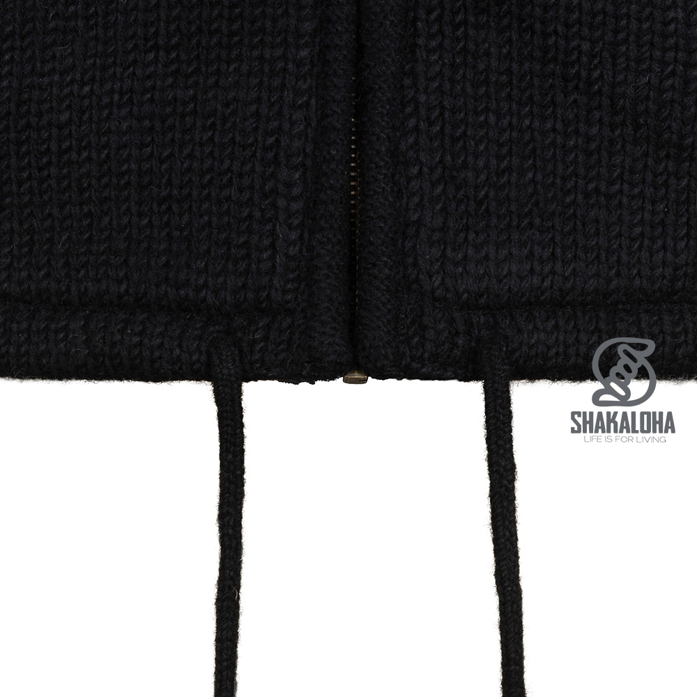 Shakaloha Knitted Wool Vest Flint Collar Black with Fleece Lining and High Collar - Men/Uni - Handmade in Nepal from Sheep Wool.