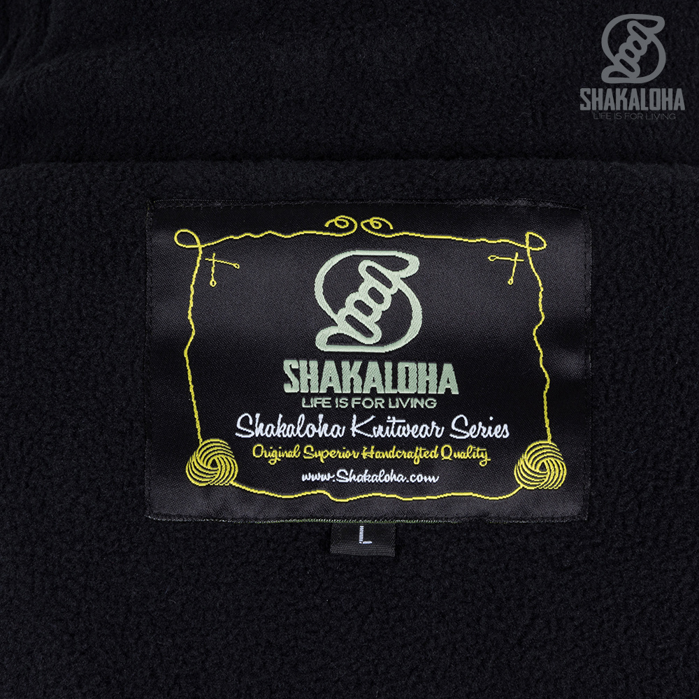 Shakaloha Knitted Wool Vest Flint Collar Black with Fleece Lining and High Collar - Men/Uni - Handmade in Nepal from Sheep Wool.