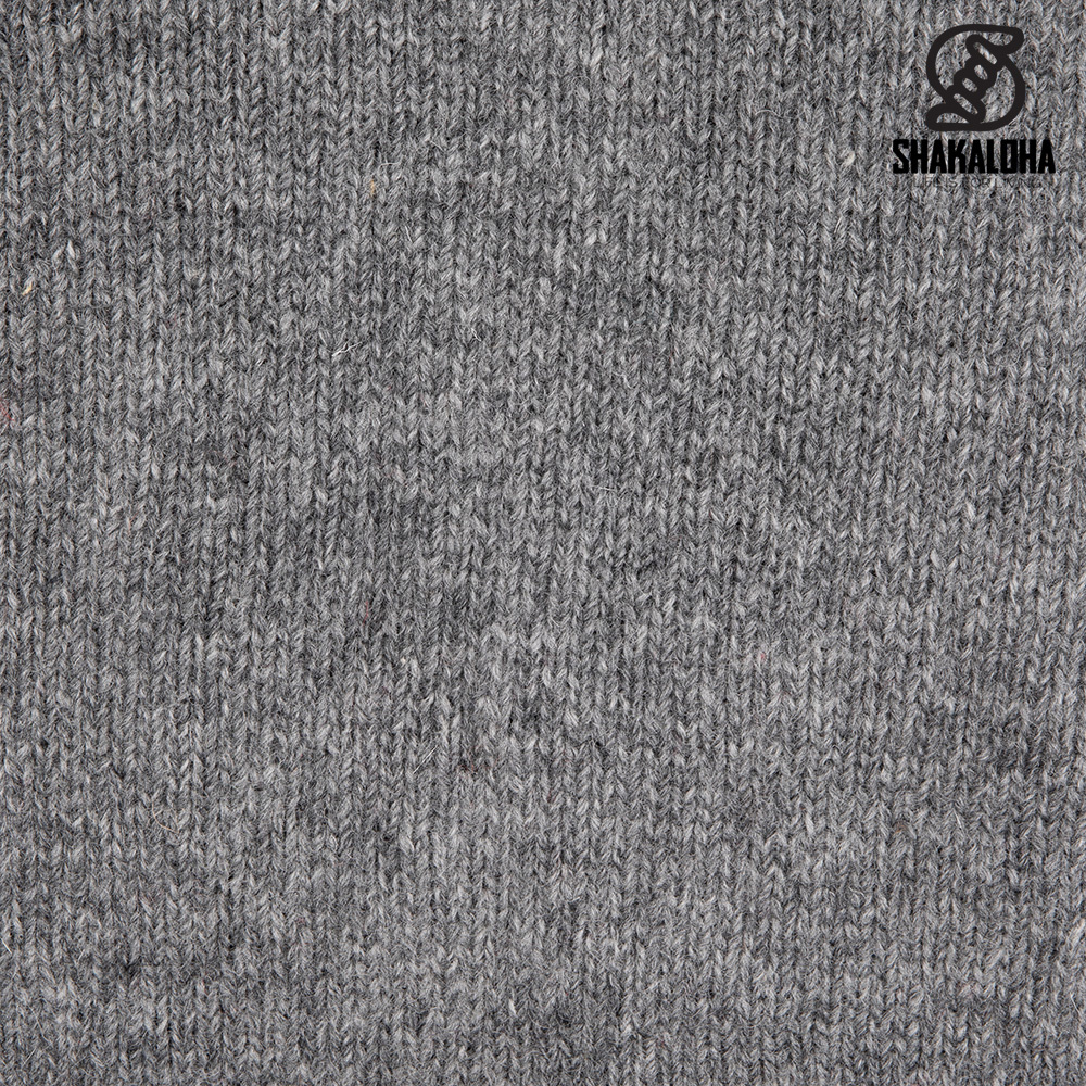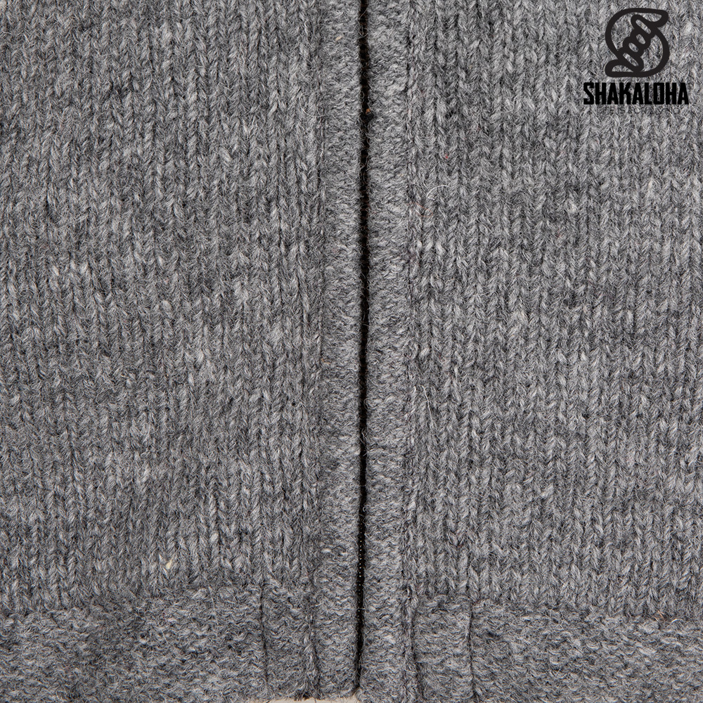 This gray woolen Shakaloha cardigan with collar has a collar, a strong YKK zipper, side pockets, and is fully lined with soft warm fleece. Ideal timeless jacket for all seasons!