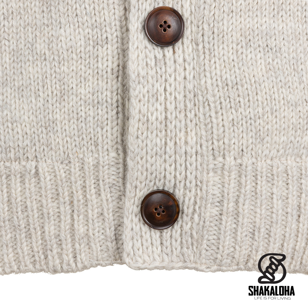 Shakaloha wool vest - Stylish and warm for every season This beautiful Shakaloha wool cardigan in khaki is the perfect combination of style, comfort and functionality. The cardigan is carefully handmade from high-quality wool, making it a sustainable choice for your wardrobe. Thanks to the warm lining and sturdy buttons, you are assured of optimum warmth and comfort, even on the coldest days. Features of the Shakaloha wool vest: Material: High quality sheep wool, breathable and insulating Lining: Cotton Color: Stylish khaki, easy to combine with various outfits Closure: Sturdy wooden buttons for a classic look Fit: Comfortable and versatile, suitable for both men and women Sustainability: Made from natural and environmentally friendly materials This vest is not only ideal for outdoor activities such as hiking or camping, but also a stylish addition to your daily outfit. Combine it with jeans and boots for a casual look or wear it over a neat blouse for an elegant touch. Why choose a Shakaloha vest? Shakaloha is known for high-quality wool garments that are not only functional, but also radiate a unique style. The brand focuses on sustainability and craftsmanship, so that you can enjoy your purchase for a long time. Order your Shakaloha wool vest now Are you ready to brave the cold in style? Don't wait any longer and add this beautiful vest to your collection. Order today and experience the comfort and quality of Shakaloha yourself.