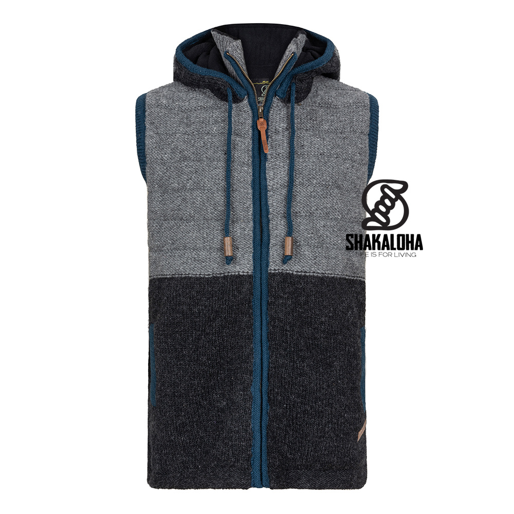 Shakaloha's Man Unisex Ritchey Ziphood Knitted Wool Bodywarmer: Pure wool, fleece lined bodywarmer, pockets and a zip-off hood. Durable YKK zippers - knitted in Nepal.