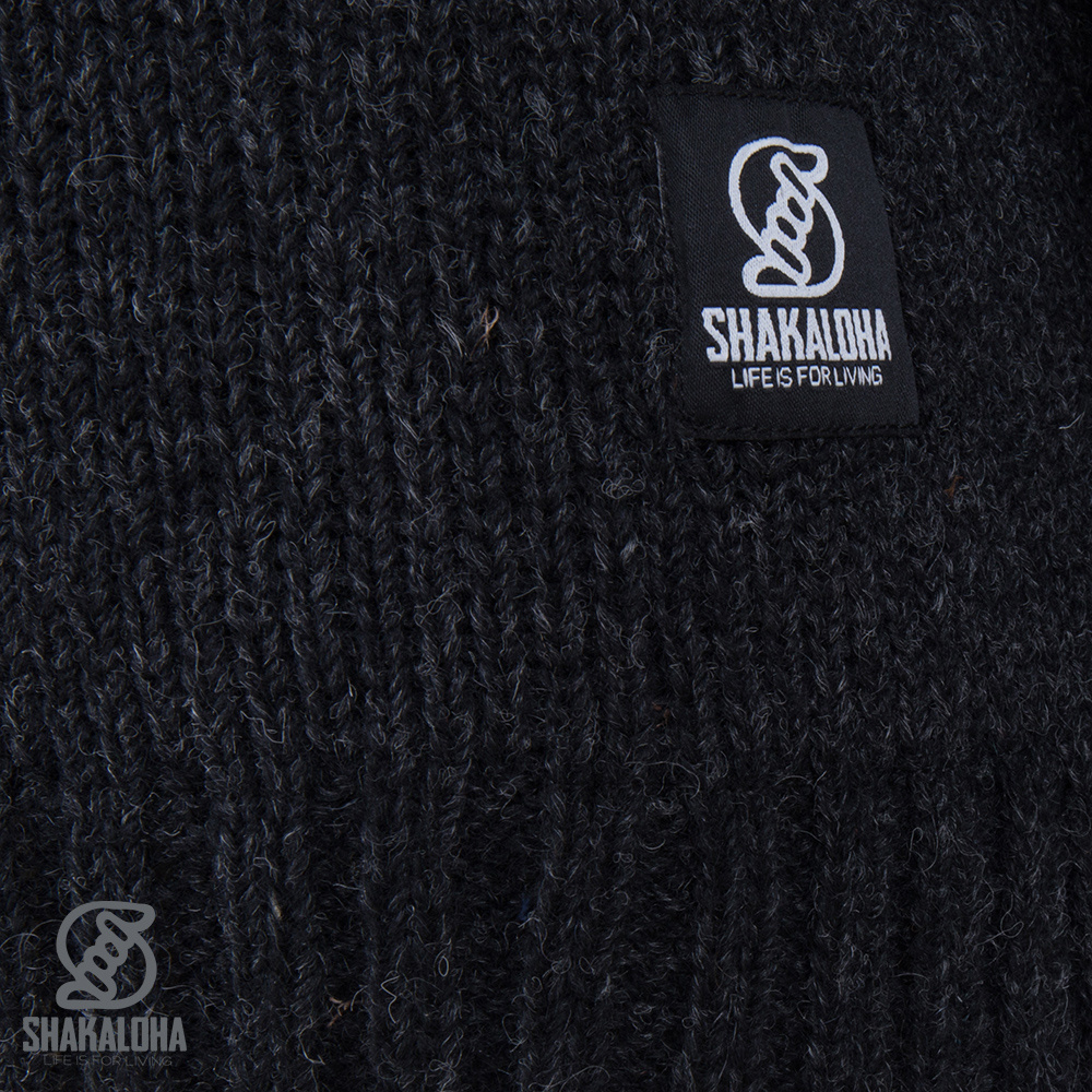 Shakaloha Knitted Woolen Jacket Verge Anthracite with Cotton Lining and High Collar - Men - Unisex - Handmade in Nepal from sheep's wool