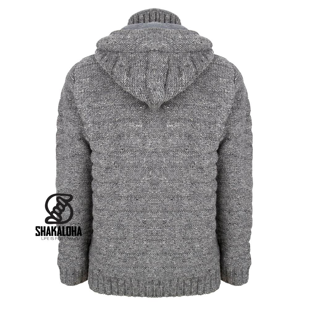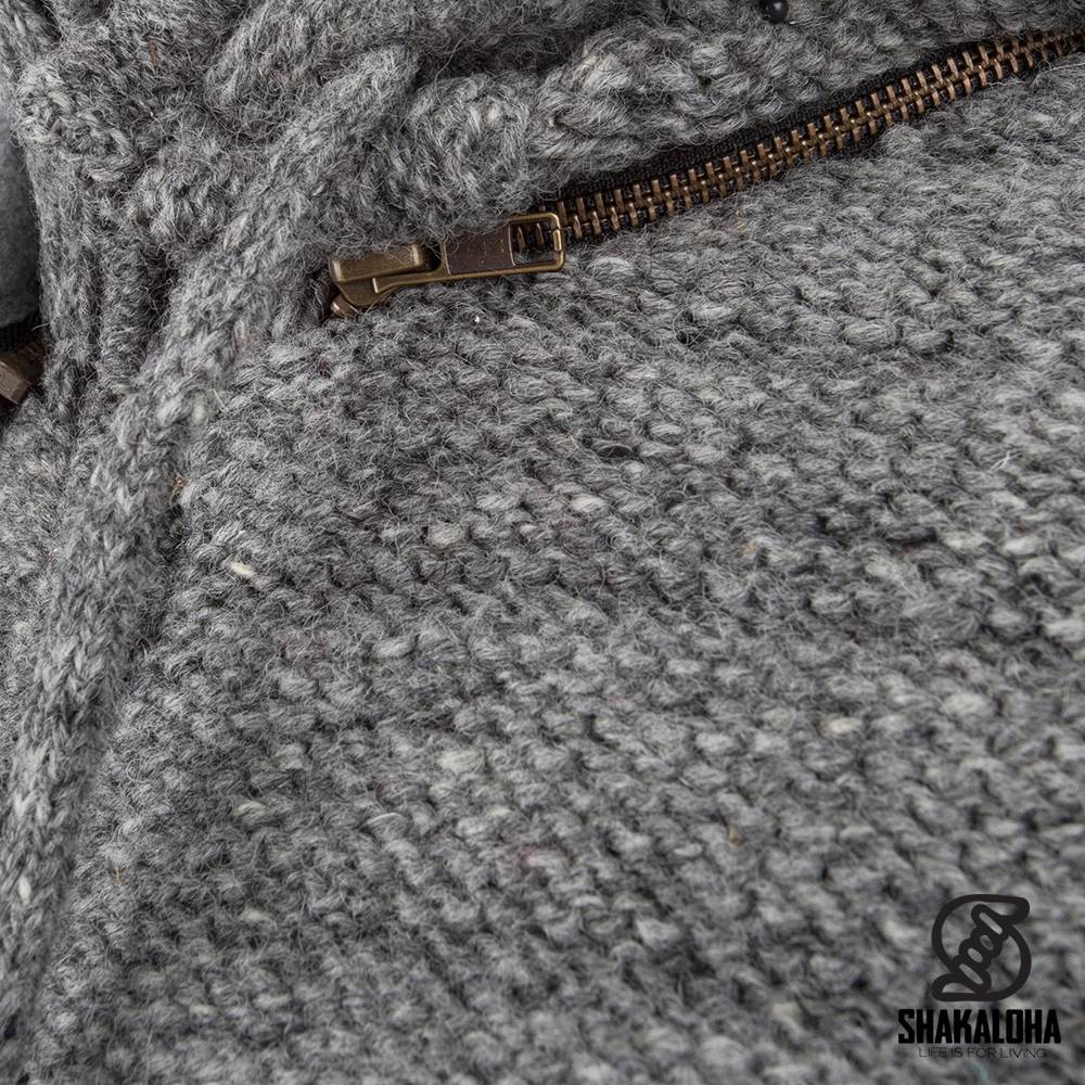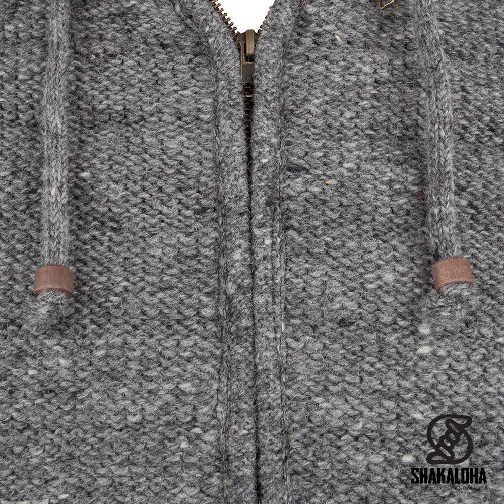 Shakaloha Knitted Wool Vest Chuck Ziphood Grey with Fleece Lining and Detachable Hood - Men/Uni - Handmade in Nepal from Sheep Wool