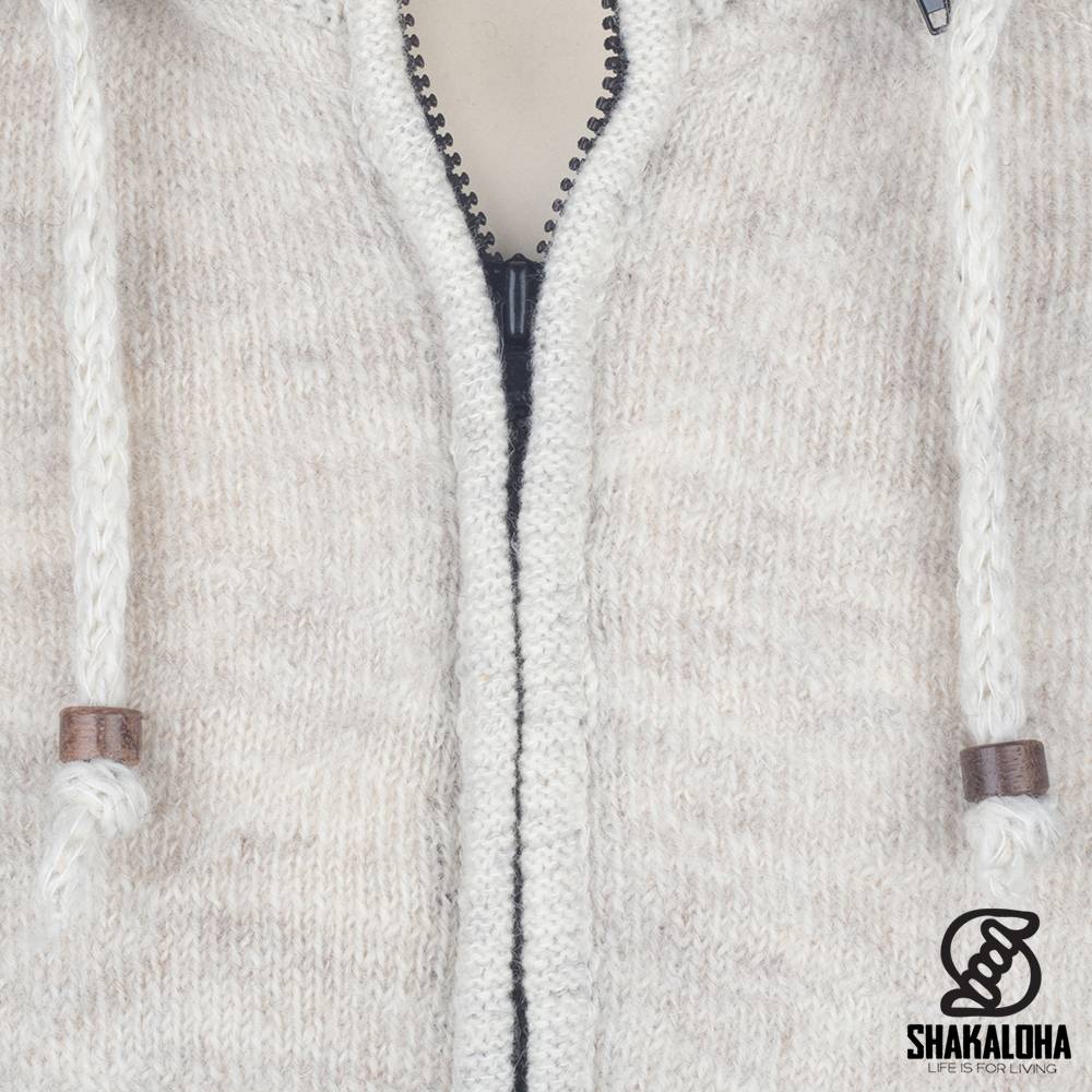 Shakaloha Knitted Woolen Jacket Finn Beige Cream with Fleece Lining and Detachable Hood - Men - Unisex - Handmade in Nepal from sheep's wool