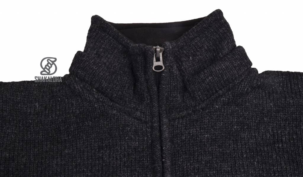 Shakaloha Knitted Woolen Jacket Navigator Anthracite with Fleece Lining and Detachable Hood - Men - Unisex - Handmade in Nepal from sheep's wool