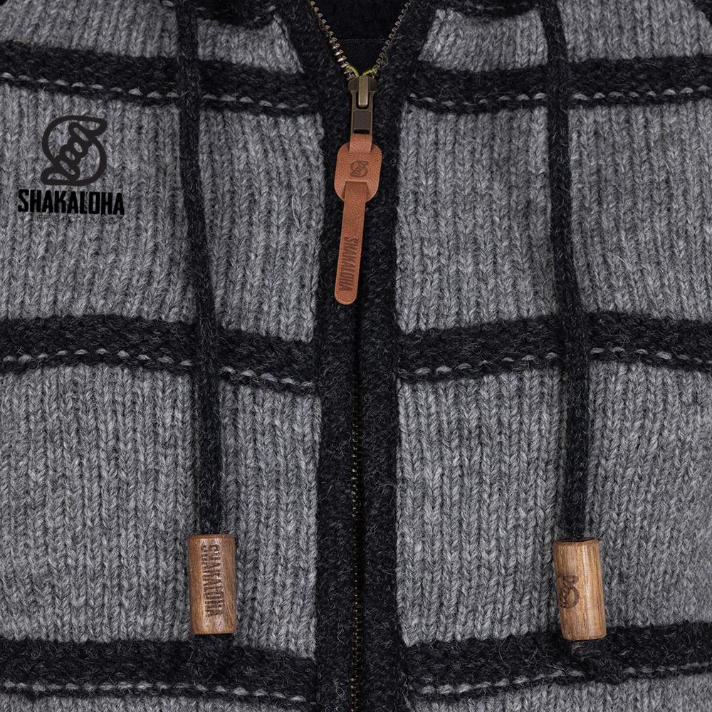 Shakaloha W Itaka GreyAntra – women's wool jacket in sheep's wool with full polyester fleece lining. Material: Sheep's Wool Lining: Polyester Fleece (color: Black) Knit: Special Knit Hood: Detachable hood Hardware: YKK front zip Storage: chest pocket + 2 hand pockets Fit: regular fit Care: wool cycle 30°C, wash inside out, dry flat.