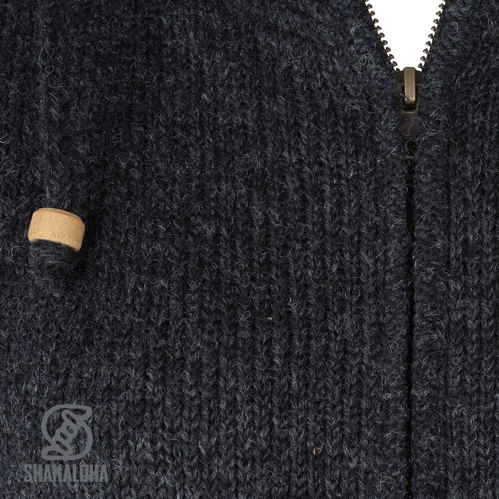 Chaleco de punto de lana Shakaloha Baltonic antracita con forro polar y capucha desmontable - Mujer - Hecho a mano en Nepal con lana de oveja