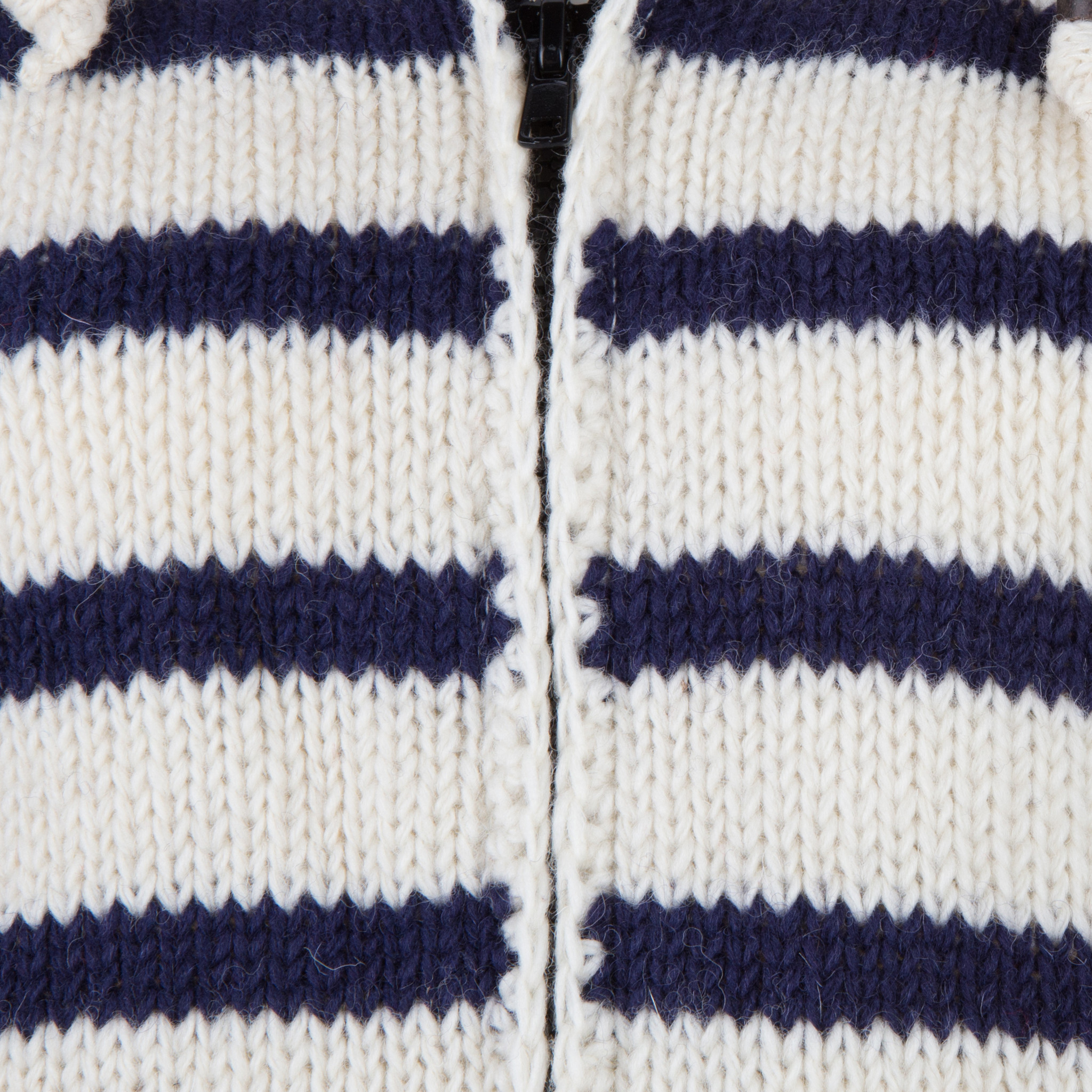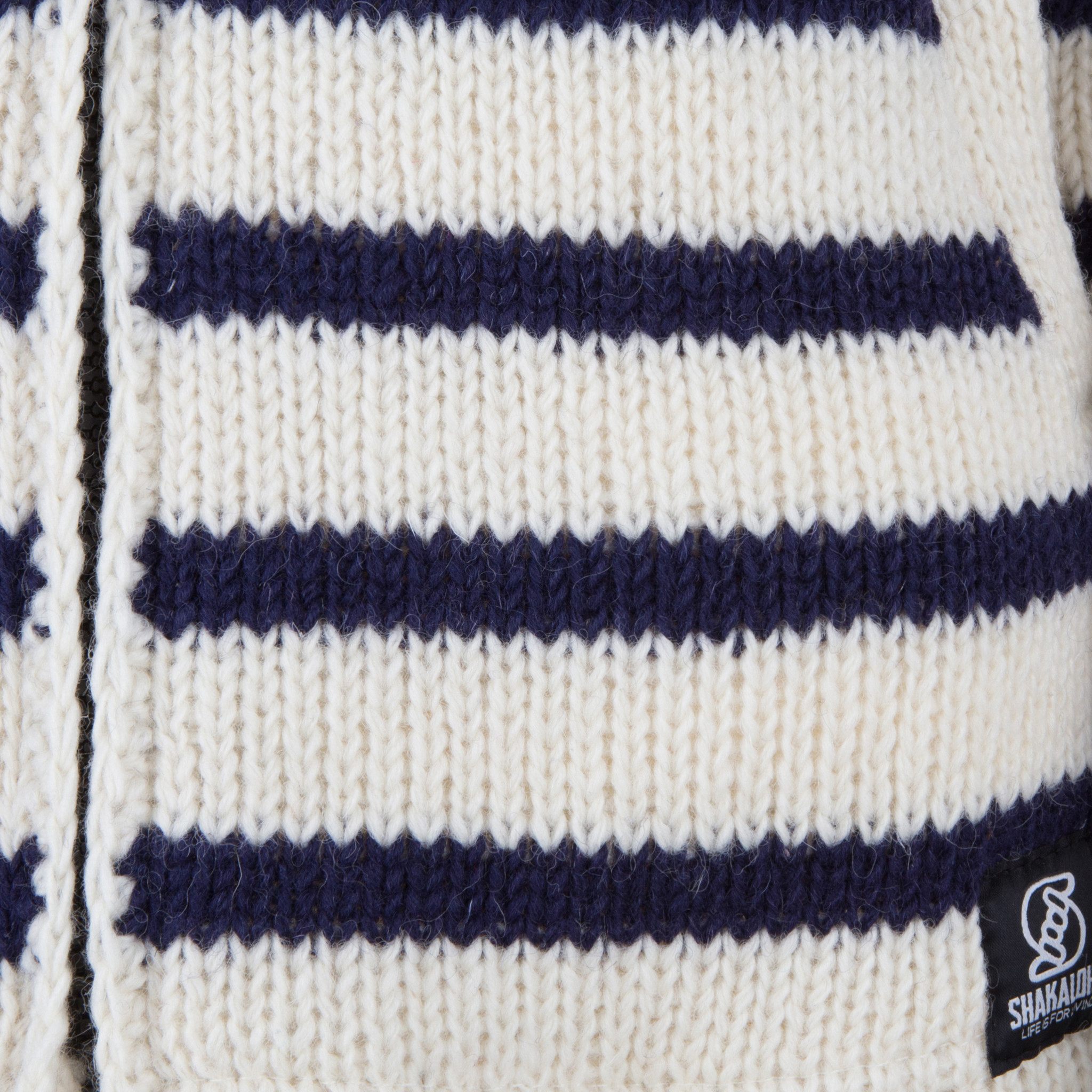 Cárdigan de punto de lana Shakaloha con capucha bretona, color blanco y azul marino, forro polar y capucha desmontable - Mujer - Hecho a mano en Nepal con lana de oveja - Copia