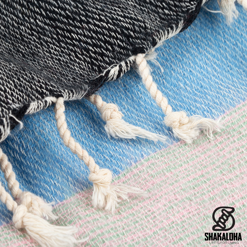 La bufanda Shakaloha Kanoa está tejida con una mezcla de algodón y acrílico. Esta suave bufanda tiene el aspecto y el tacto de la lana gracias a su peinado posterior. Hecha a mano en Nepal, está disponible en una gran variedad de hermosos colores y combinaciones. Mide 180 x 80 cm. Aunque no está hecha de lana, es tan característica de Nepal, Shakaloha presenta este producto único de Lubu, Nepal.