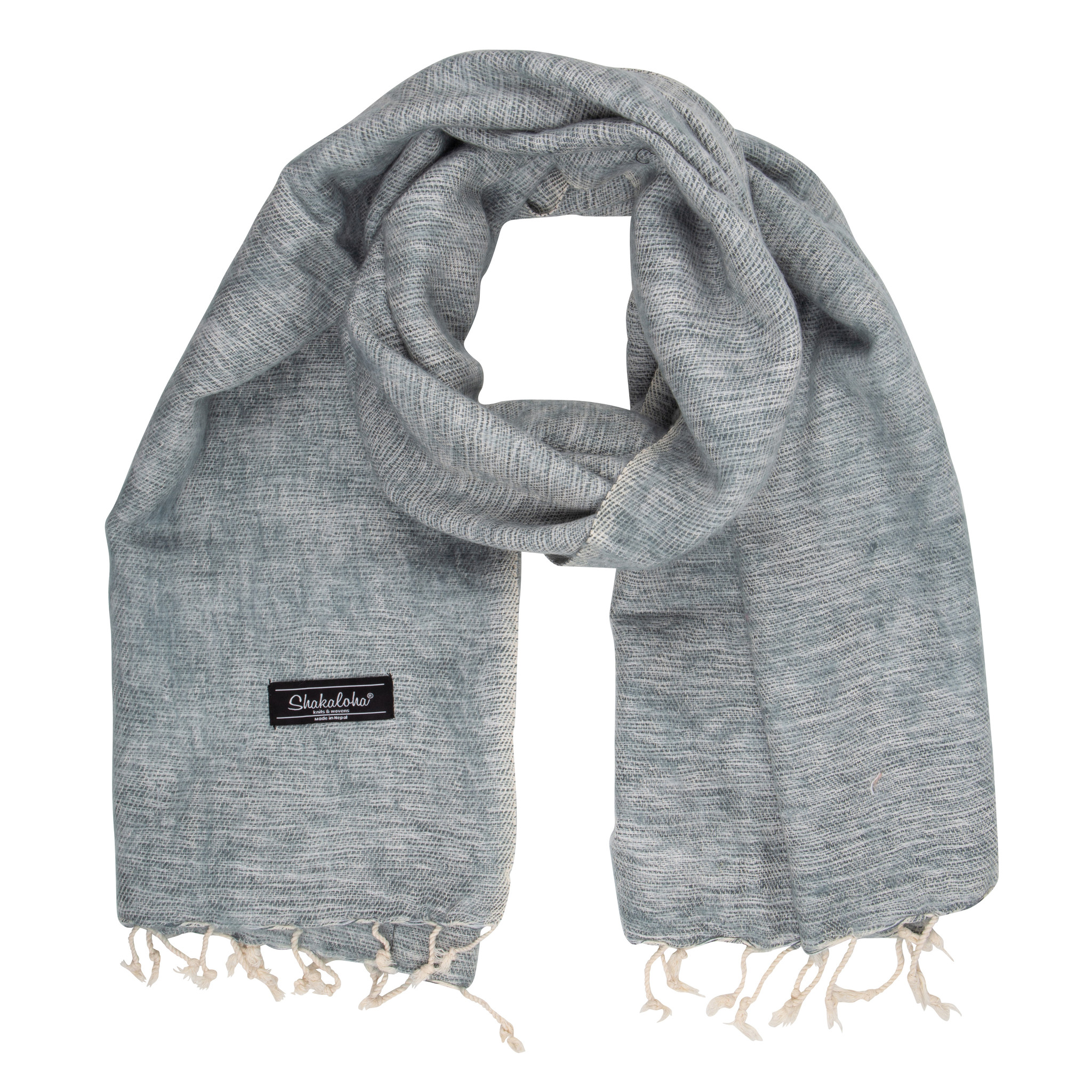 La bufanda Shakaloha Kanoa está tejida con una mezcla de algodón y acrílico. Esta suave bufanda tiene el aspecto y el tacto de la lana gracias a su peinado posterior. Hecha a mano en Nepal, está disponible en una gran variedad de hermosos colores y combinaciones. Mide 180 x 80 cm. Aunque no está hecha de lana, es tan característica de Nepal, Shakaloha presenta este producto único de Lubu, Nepal.
