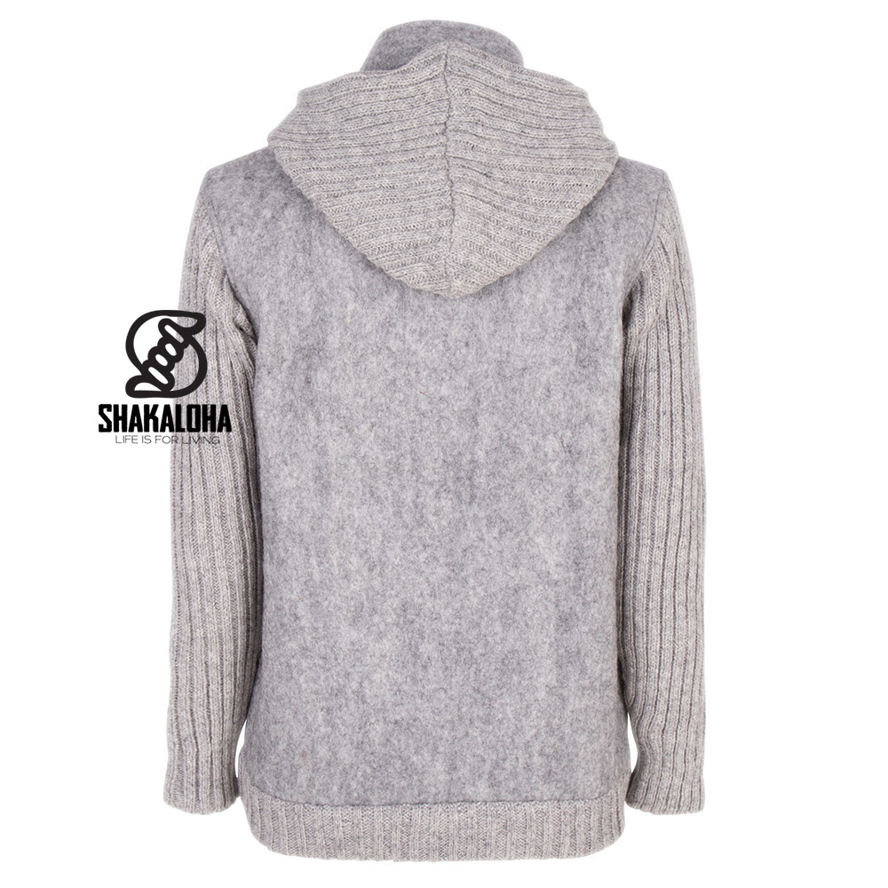 Chaleco de béisbol de lana de punto Shakaloha ZH con forro de algodón y capucha desmontable - Hombre/Unisex - Hecho a mano en Nepal con lana de oveja
