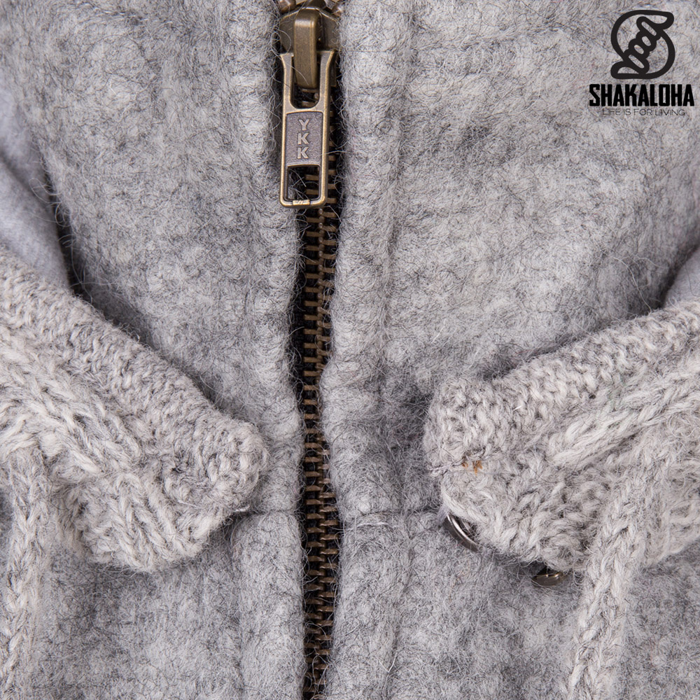 Chaqueta de béisbol única, confeccionada en fieltro gris y punto grueso gris, íntegramente con lana de oveja 100 %. El cuerpo es de lana afieltrada gris, y las mangas, el cuello y la capucha son de punto grueso gris. El concepto de la chaqueta de béisbol original, plasmado en una chaqueta nepalí. *Bolsillos laterales *Cremalleras YKK *Bolsillo interior con cierre *Forro completo 100 % algodón *Capucha desmontable *Disponible en tallas de la S a la 3XL Los chalecos Shakaloha están confeccionados con lana de oveja 100 % de Nueva Zelanda y se fabrican en Nepal respetando a los animales y a los trabajadores. Se pueden lavar con un poco de detergente para lana en un ciclo de 30 grados.