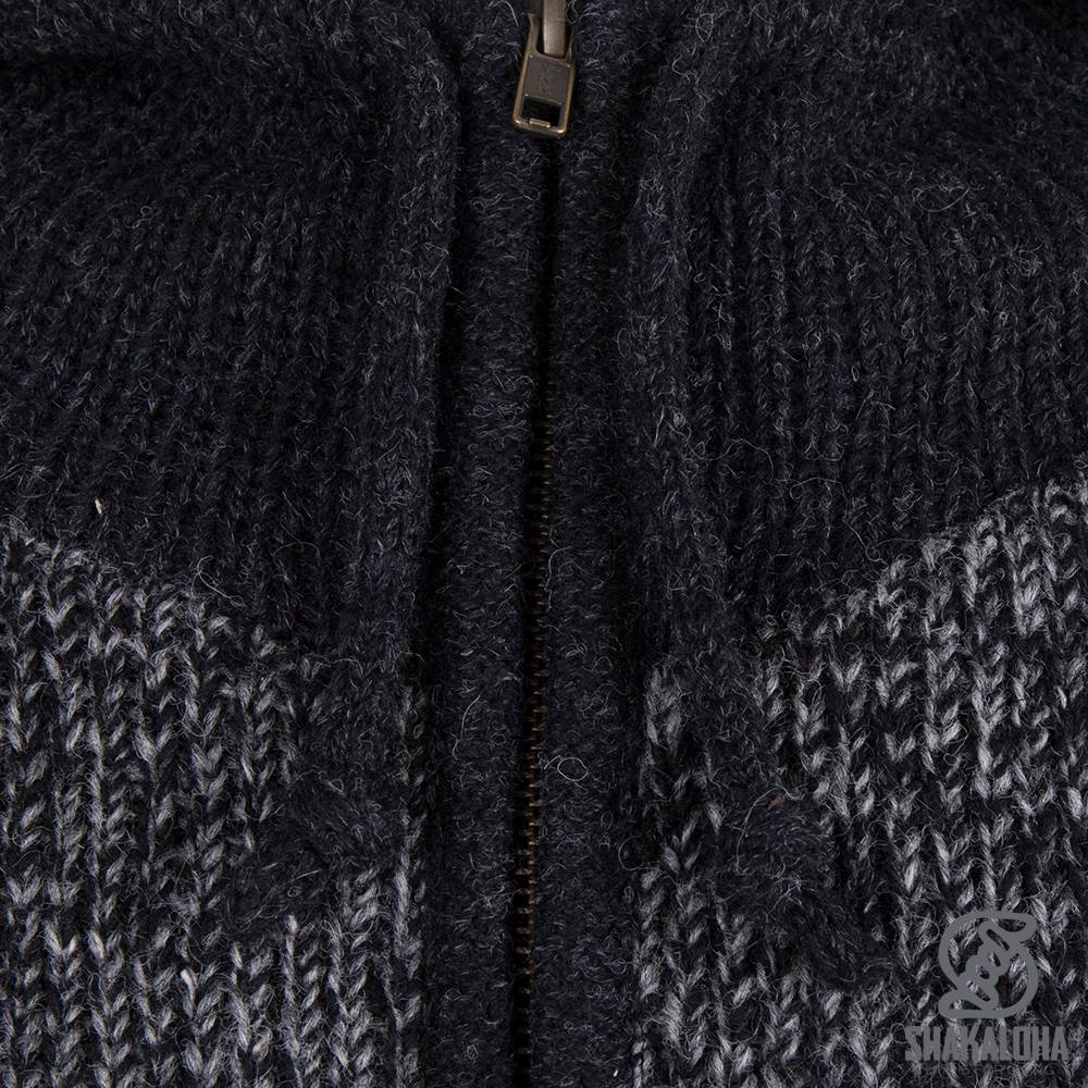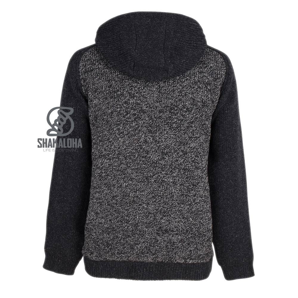 Un elegante cárdigan antracita con paneles delantero y trasero en gris medio, y mangas, cuello y capucha en gris antracita. Todo el cárdigan está forrado con algodón suave, incluyendo los bolsillos, las mangas y la capucha. Cuenta con cremalleras YKK, bolsillos laterales y un bolsillo interior con cierre. Ideal para todo el año. Este suéter está disponible en las tallas S a 3XL. Los cárdigans Shakaloha están confeccionados con 100 % lana de oveja de Nueva Zelanda y se fabrican en Nepal respetando a los animales y a los trabajadores. Se pueden lavar con un poco de detergente para lana en un ciclo de 30 grados.
