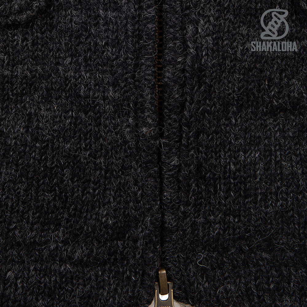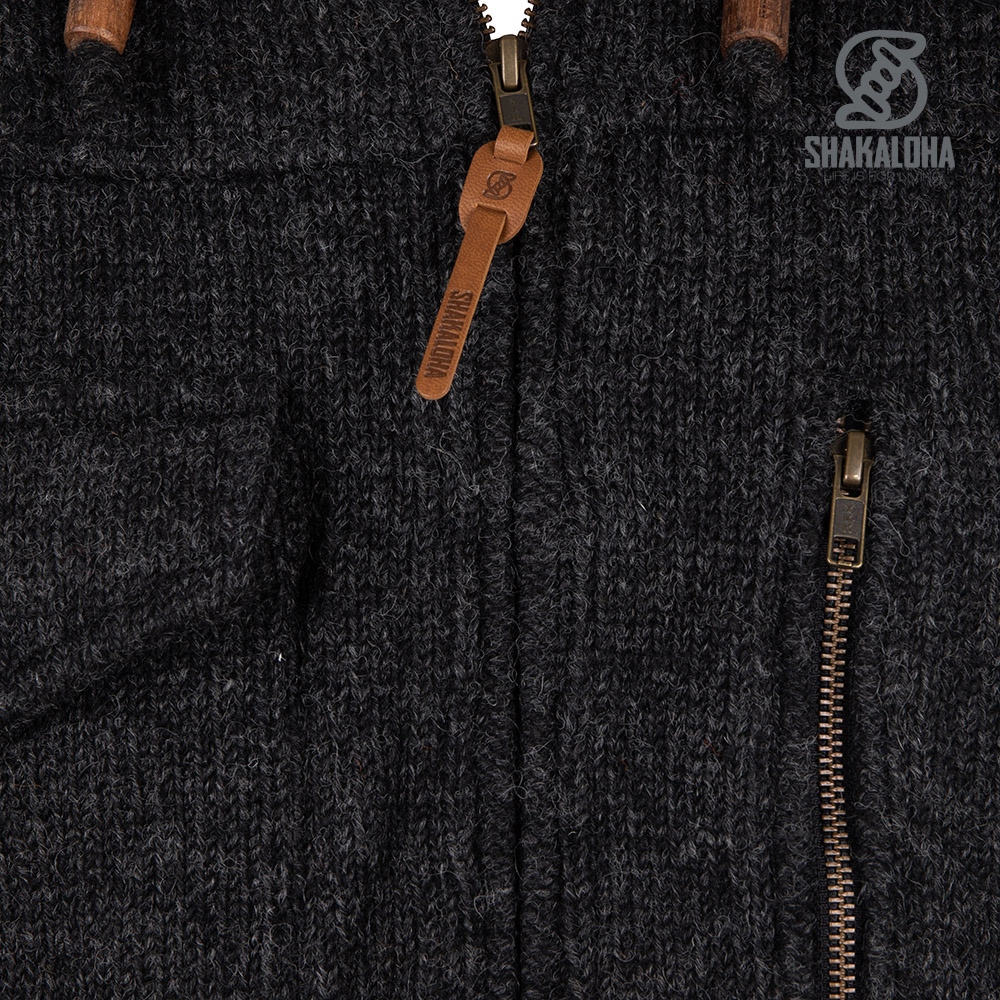 Chaqueta de punto de lana gris antracita para hombre con numerosos bolsillos, tres de ellos con solapa abotonada y uno con cremallera. El chaleco llega hasta la cadera y está completamente forrado con un suave y cálido forro polar, incluyendo las mangas y la capucha desmontable. Una chaqueta que puede usarse como chaleco, abrigo, para actividades al aire libre o para ocasiones formales. Está disponible en tres colores diferentes y tallas de la S a la 3XL. Los chalecos Shakaloha están confeccionados con 100 % lana de oveja de Nueva Zelanda y se fabrican en Nepal respetando tanto a los animales como a los trabajadores. Se pueden lavar con un poco de detergente para lana en un ciclo de 30 grados.