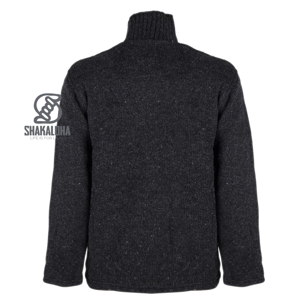 Chaleco de punto de lana Shakaloha, color antracita, con cuello alto y forro de algodón - Hombre/Unisex - Hecho a mano en Nepal con lana de oveja