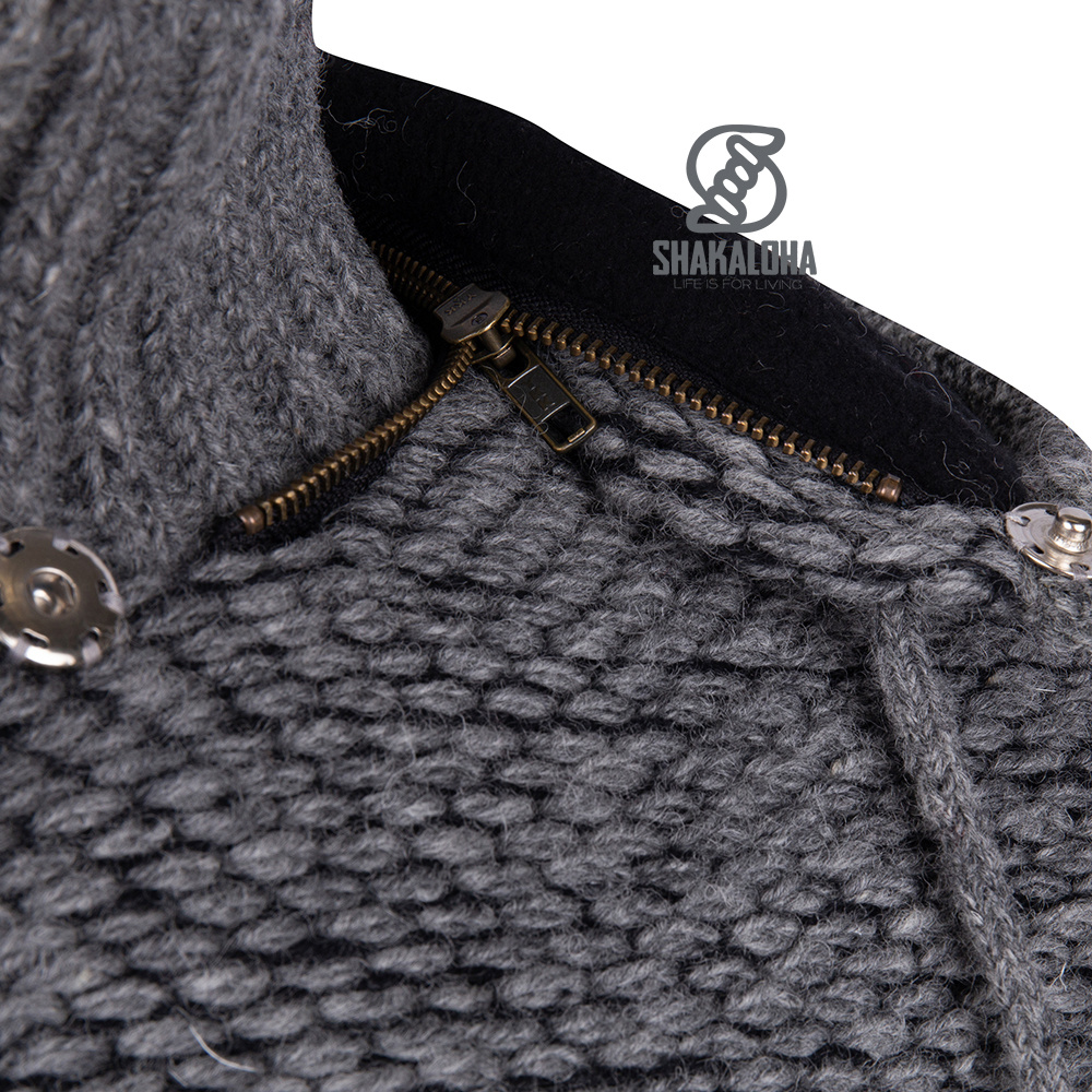 Chaleco de punto gris para hombre de Shakaloha, con una puntada especial y un fondo gris oscuro que le da un efecto impactante. Fabricado en Nepal, cuenta con bolsillos laterales, un bolsillo interior con cremallera, capucha desmontable y cremalleras YKK ultrarresistentes. Este resistente chaleco para hombre cuenta con un forro polar completo, incluyendo la capucha y los bolsillos laterales. La chaqueta está disponible en dos colores y una amplia gama de tallas. Los chalecos Shakaloha están confeccionados con 100 % lana de oveja de Nueva Zelanda y se fabrican en Nepal respetando a los animales y a los trabajadores. Se pueden lavar con un poco de detergente para lana en un ciclo de 30 grados.