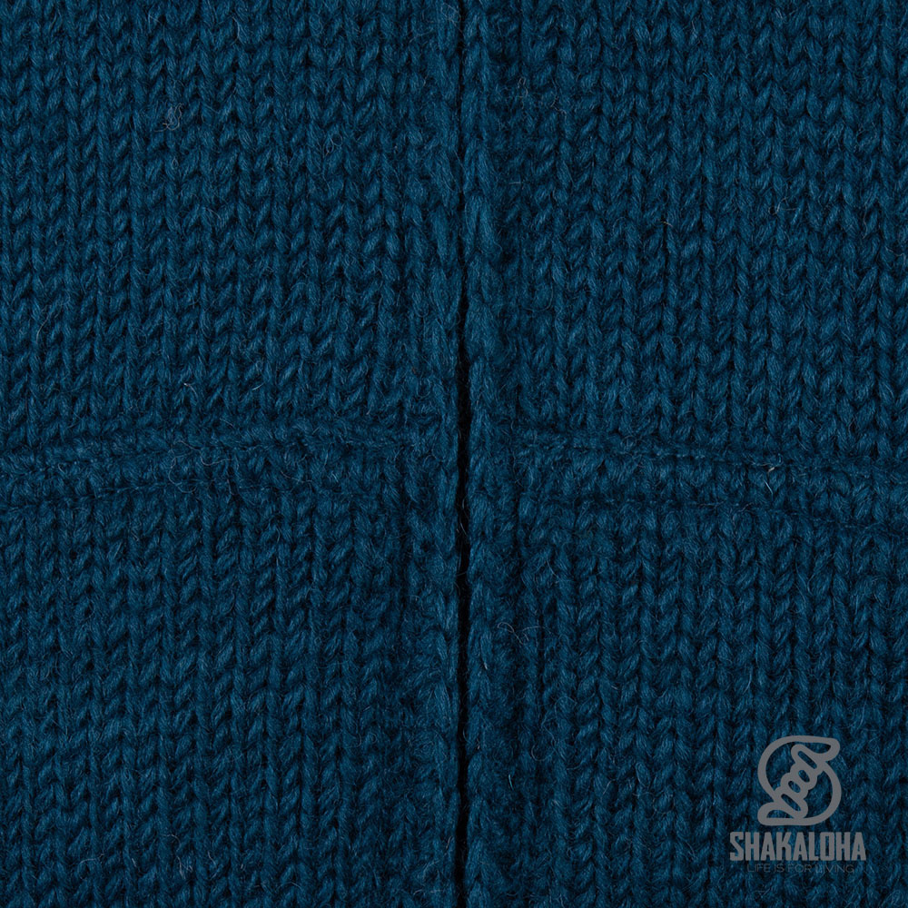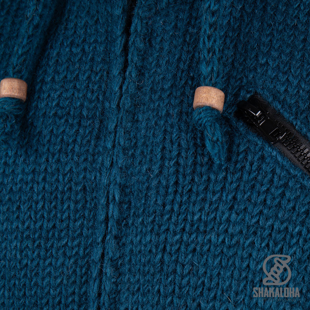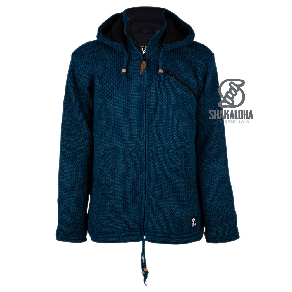 Chaleco de lana azul petróleo con bolsillos laterales y capucha desmontable. Está forrado con nailon cortavientos en la parte delantera y las mangas, y con suave forro polar en la espalda, el cuello y la capucha. ¡Lo mejor de ambos mundos! ¡Un chaleco ideal para ciclistas!