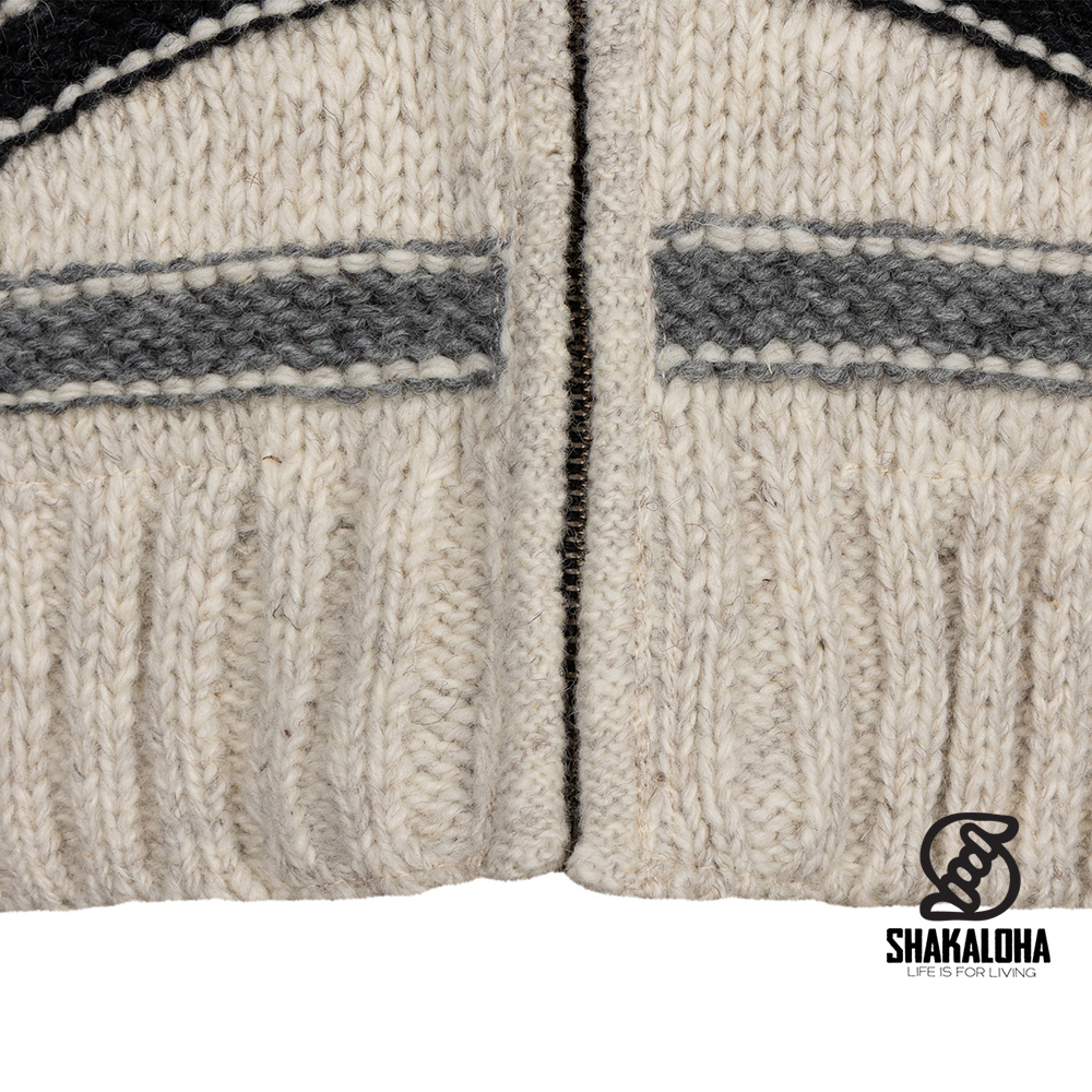 Exterior: Lana de oveja tejida a mano Forro polar completo (suave y cálido) Cremallera frontal unidireccional YKK Capucha desmontable con cordones y topes de madera Dos bolsillos laterales con forro polar Puños acanalados, corte regular Color: Beige Hecho a mano en Nepal Cuidado: Ventilar con frecuencia es suficiente. Ciclo de lana fría (máx. 30 °C); secar en horizontal; no usar secadora.