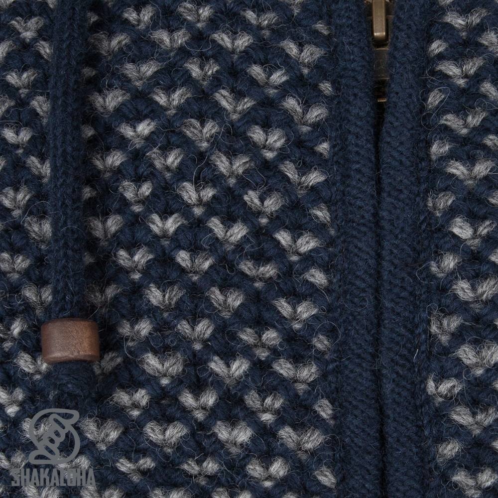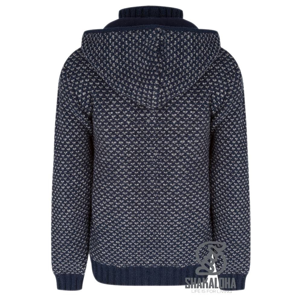Este cárdigan de Shakaloha tiene una puntada especial en forma de V con azul marino como color principal y gris claro como segundo color. El chaleco tiene una fuerte cremallera YKK y un bolsillo interior que se puede cerrar y bolsillos laterales en el exterior. La capucha es desmontable y el forro está hecho de suave felpa. Este cárdigan grueso y cálido se puede usar como chaqueta en invierno, pero también es muy cómodo en los días fríos de verano. Disponible en 5 colores y en tallas S a 3XL.