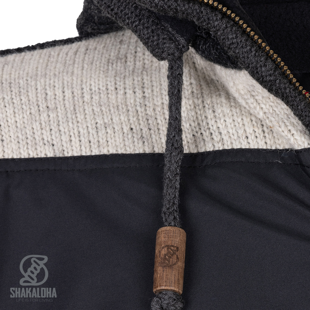 La chaqueta Shakaloha M Park combina una cálida lana de punto con un suave forro polar. El canesú con paneles tejidos resistentes y el bolsillo con cremallera en el pecho le dan un aspecto deportivo y funcional. La capucha es desmontable y la cremallera YKK es suave y duradera. Exterior: Lana de oveja • Tejido: Punto fino • Forro: Poliéster • Polar (Color: Negro) • Cierre y bolsillos: Cremallera frontal YKK, bolsillo con cremallera en el pecho, 2 bolsillos laterales • Capucha: desmontable con cordón • Comodidad: Cálida, transpirable y suave por dentro • Corte regular • Color: Negro/Beige. Ideal para uso diario, desplazamientos y actividades al aire libre.