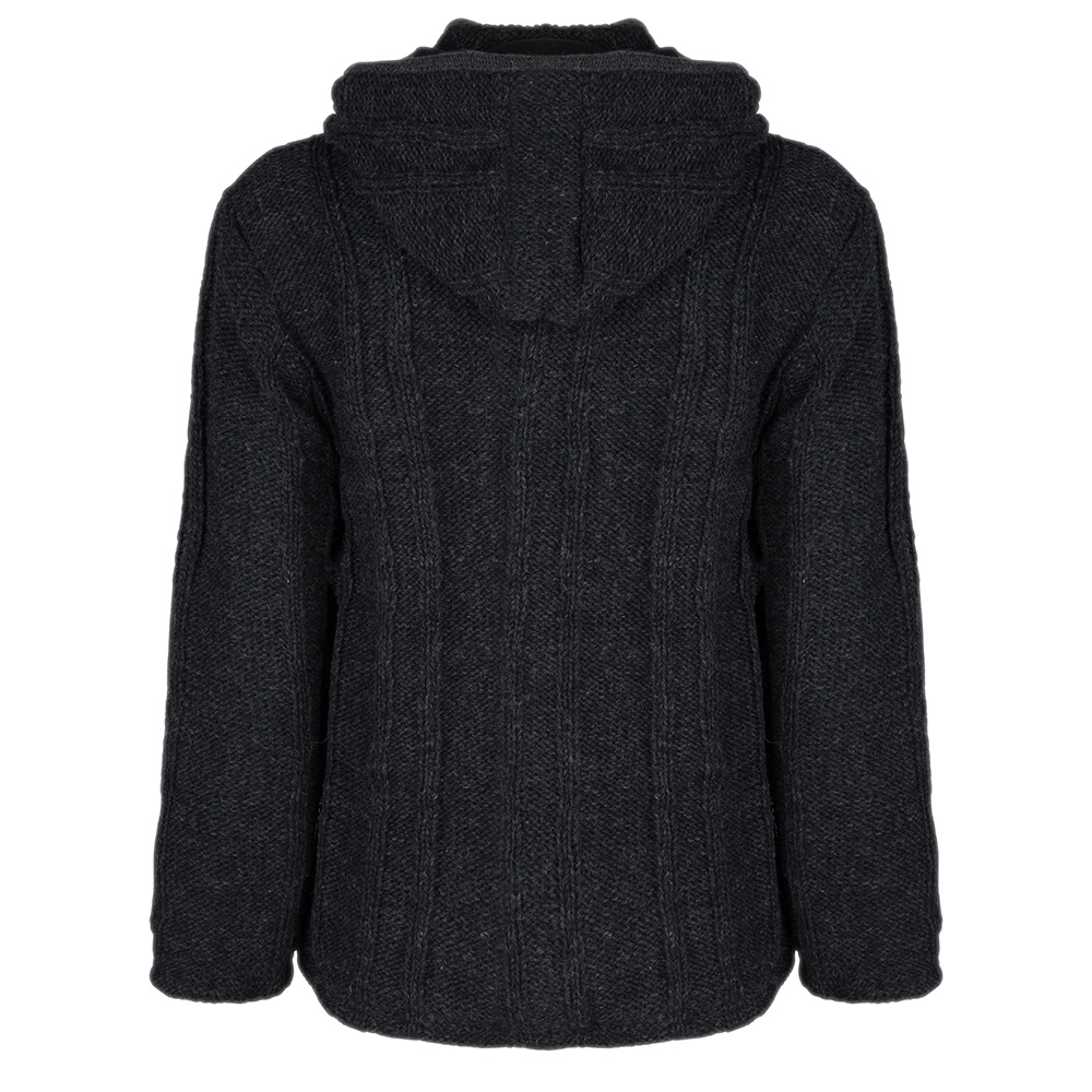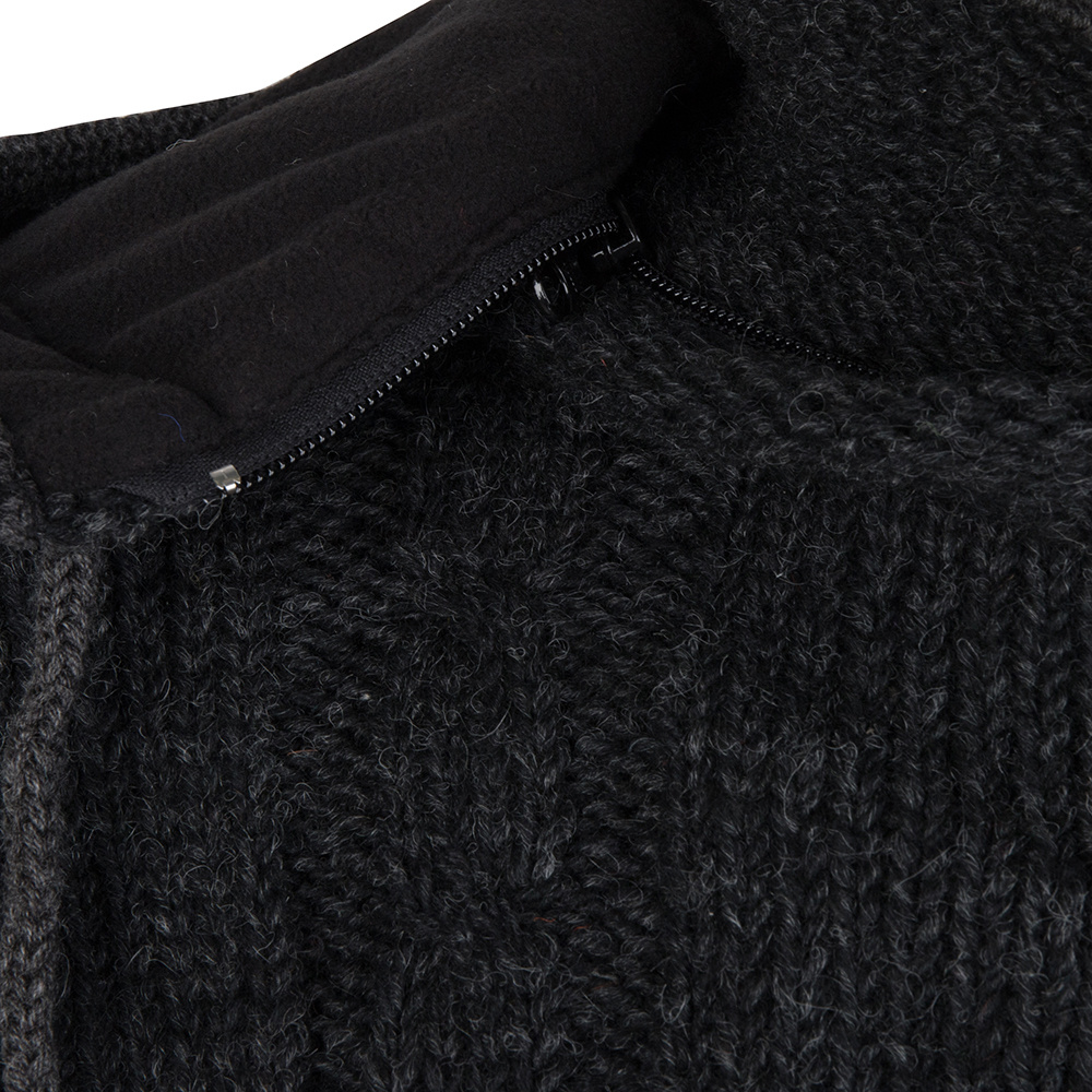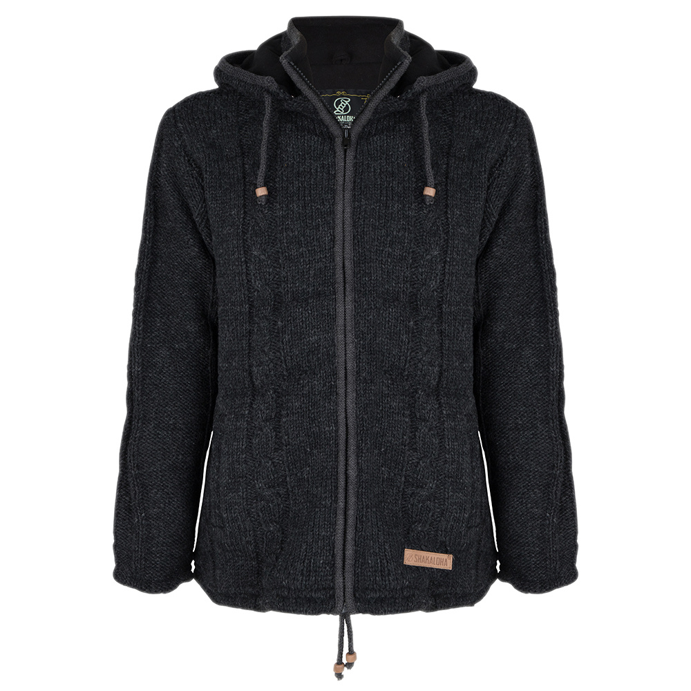 Chaleco de punto de lana Shakaloha Plata ZH Antracita con forro polar y capucha desmontable - Hombre/Unisex - Hecho a mano en Nepal con lana de oveja