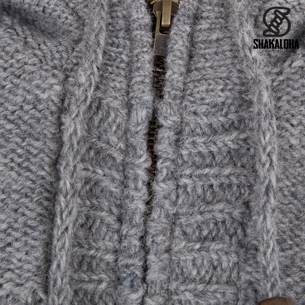 Chaleco de punto de lana Shakaloha Quantum Grey con forro de algodón y capucha - Hombre/Unisex - Hecho a mano en Nepal con lana de oveja