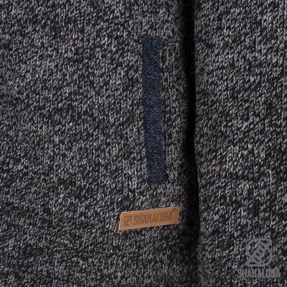 Chaleco de punto de lana Shakaloha Sierra Azul Antracita con forro de algodón y cuello alto - Hombre/Unisex - Hecho a mano en Nepal con lana de oveja